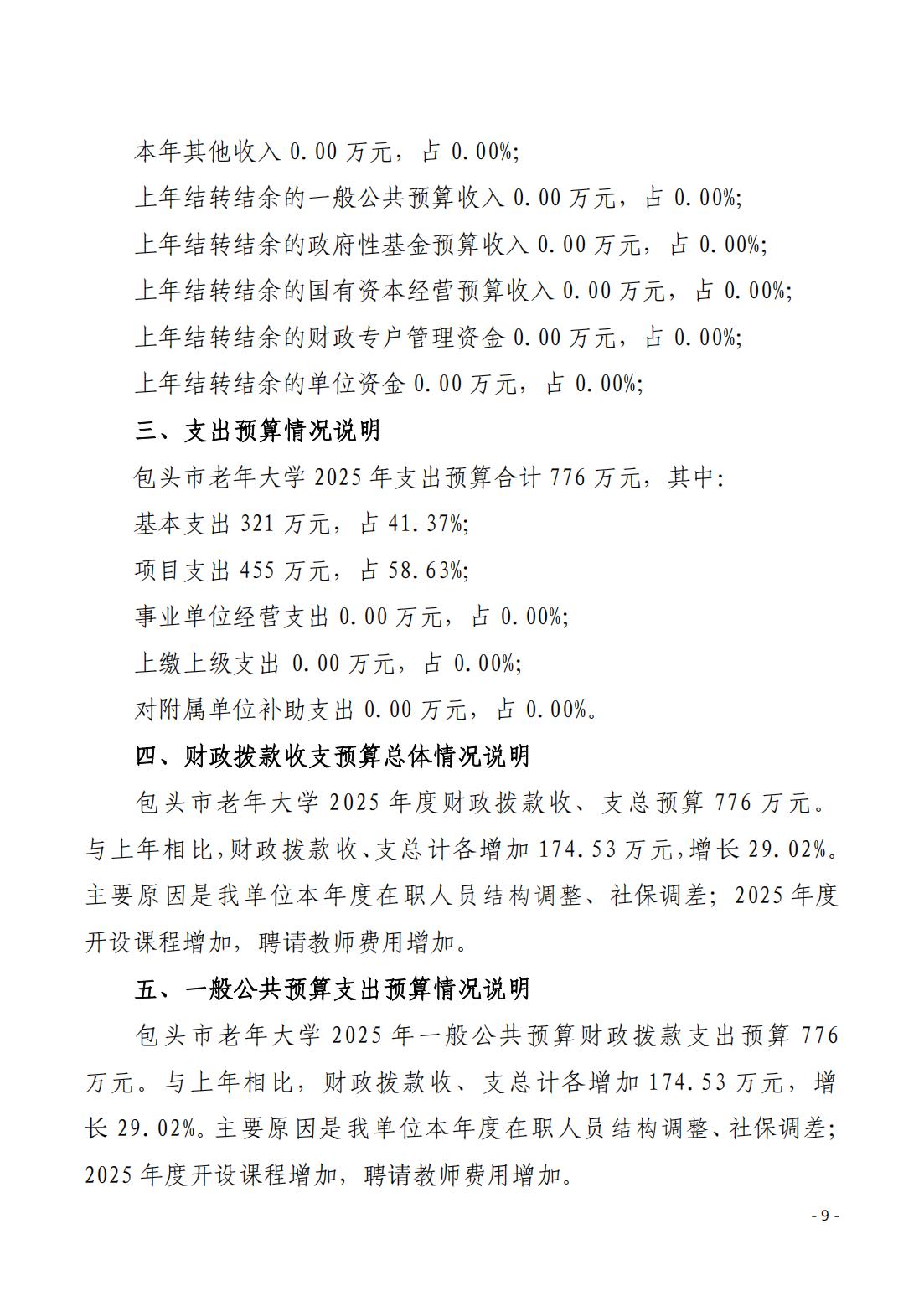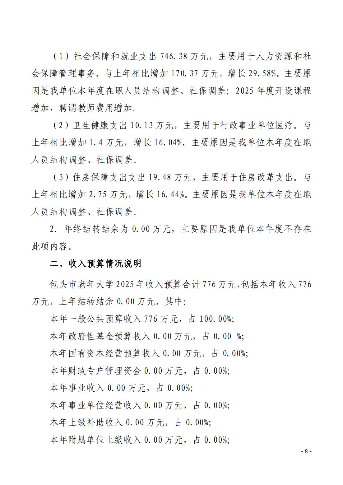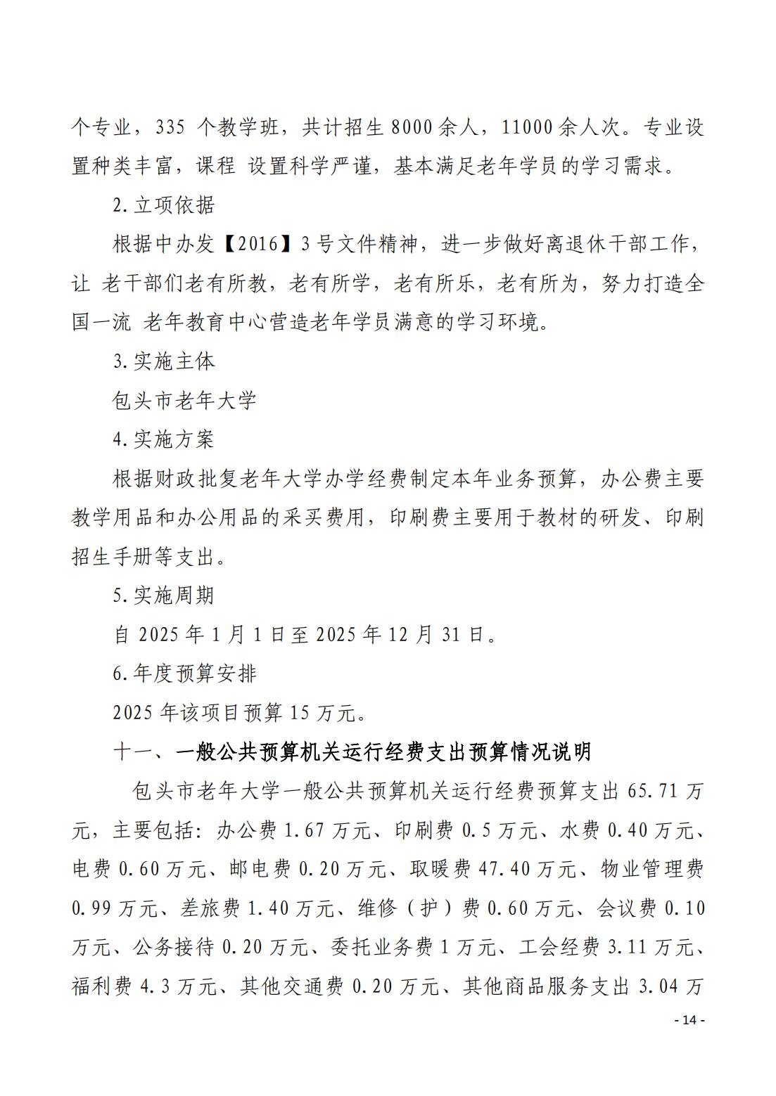2025年包头市老年大学预算公开