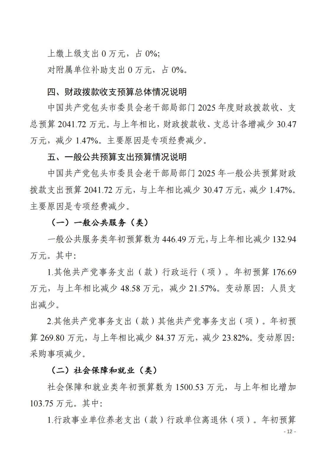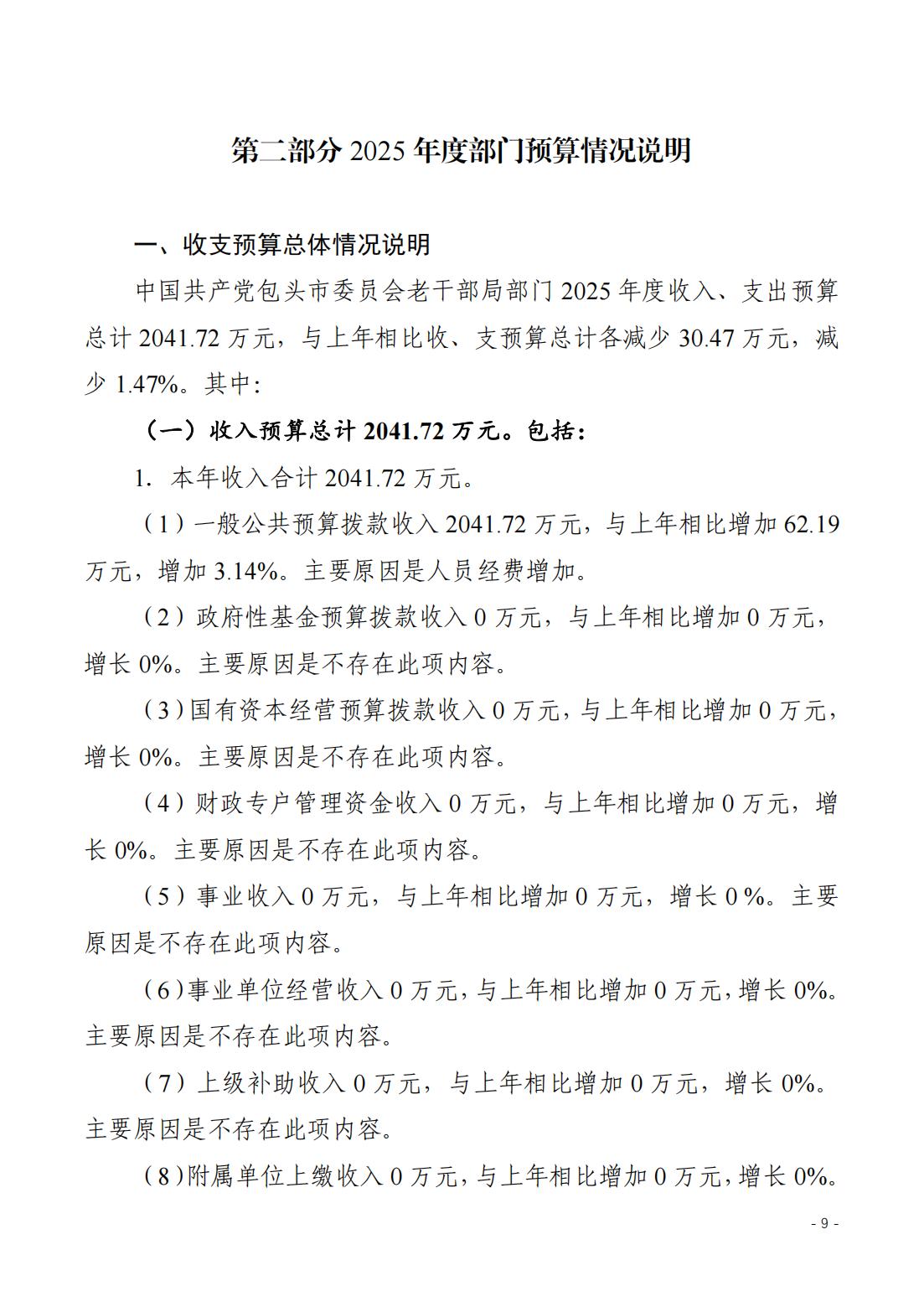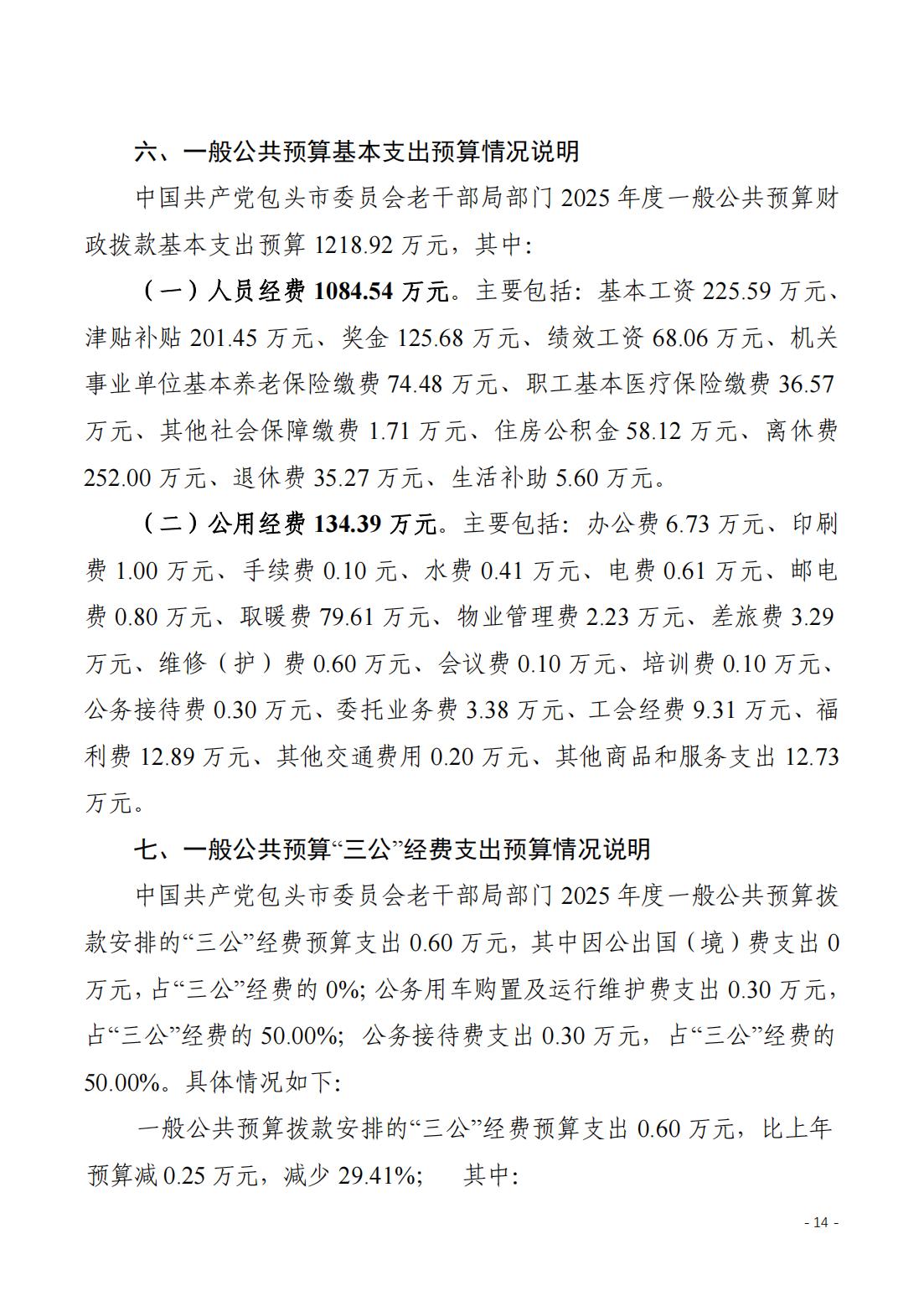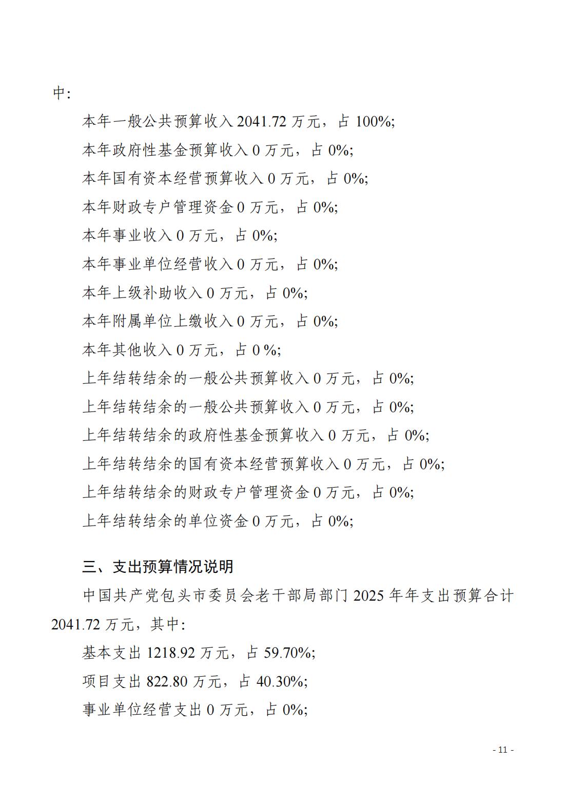 2025年包头市委老干部局(部门)预算公开