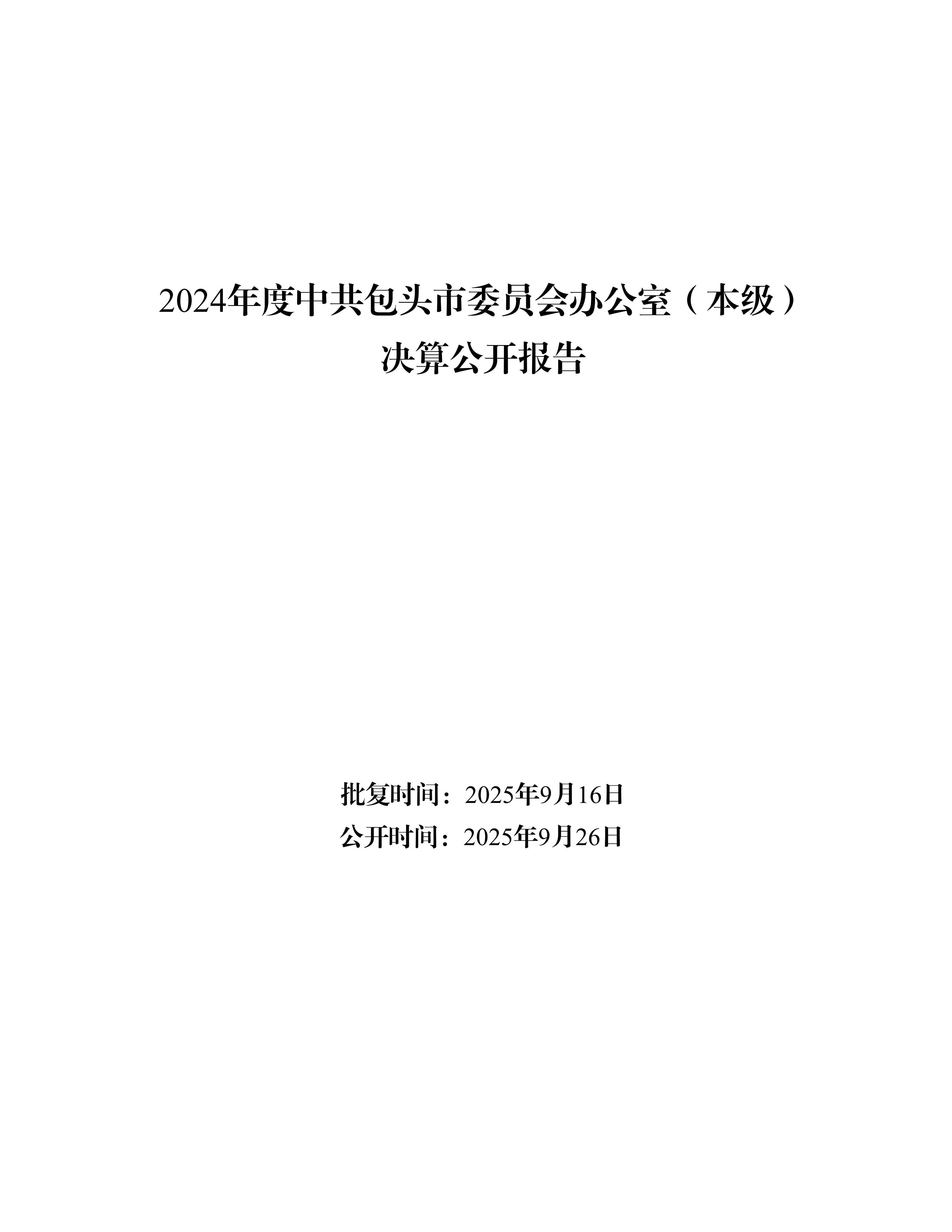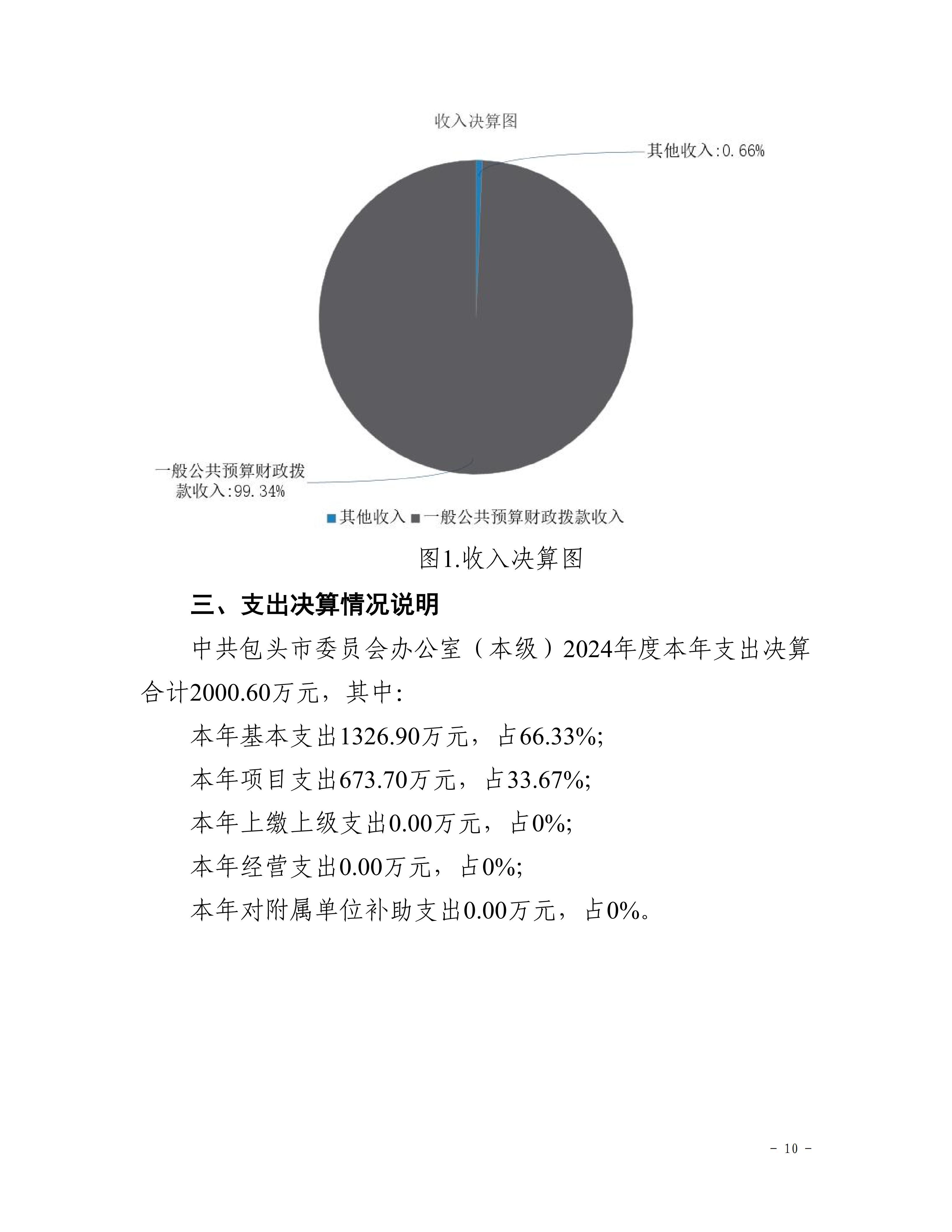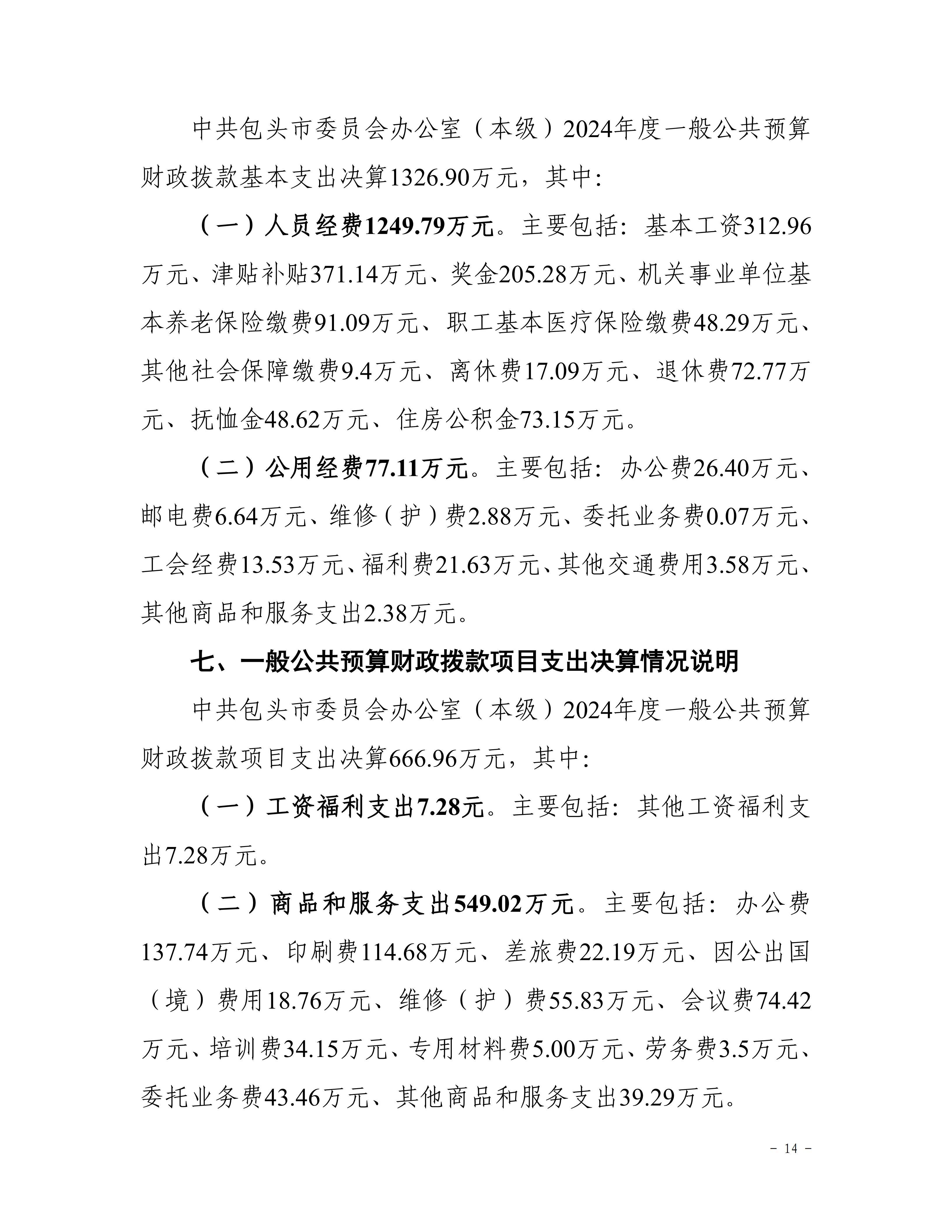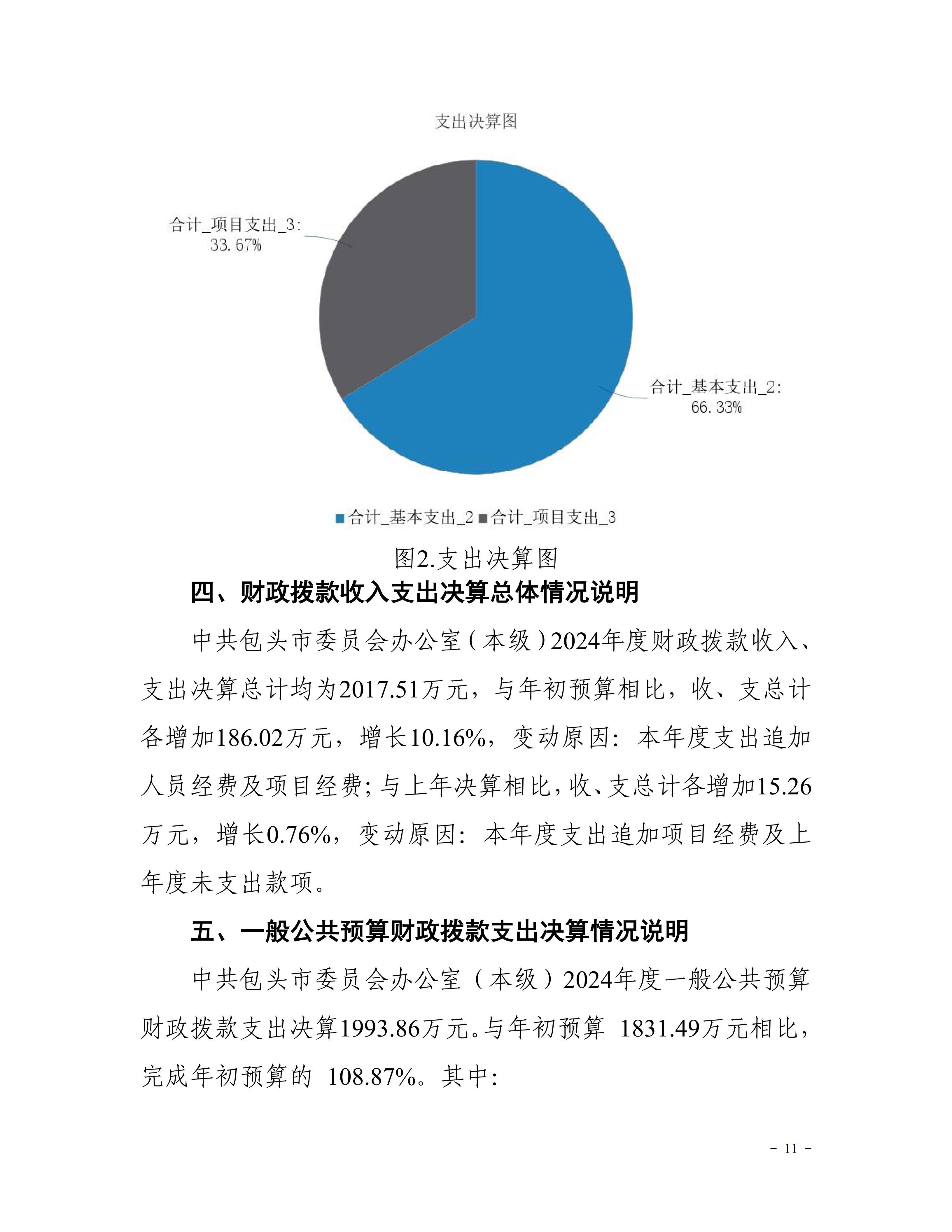 中共包头市委员会办公室(本级)2024年度决算公开