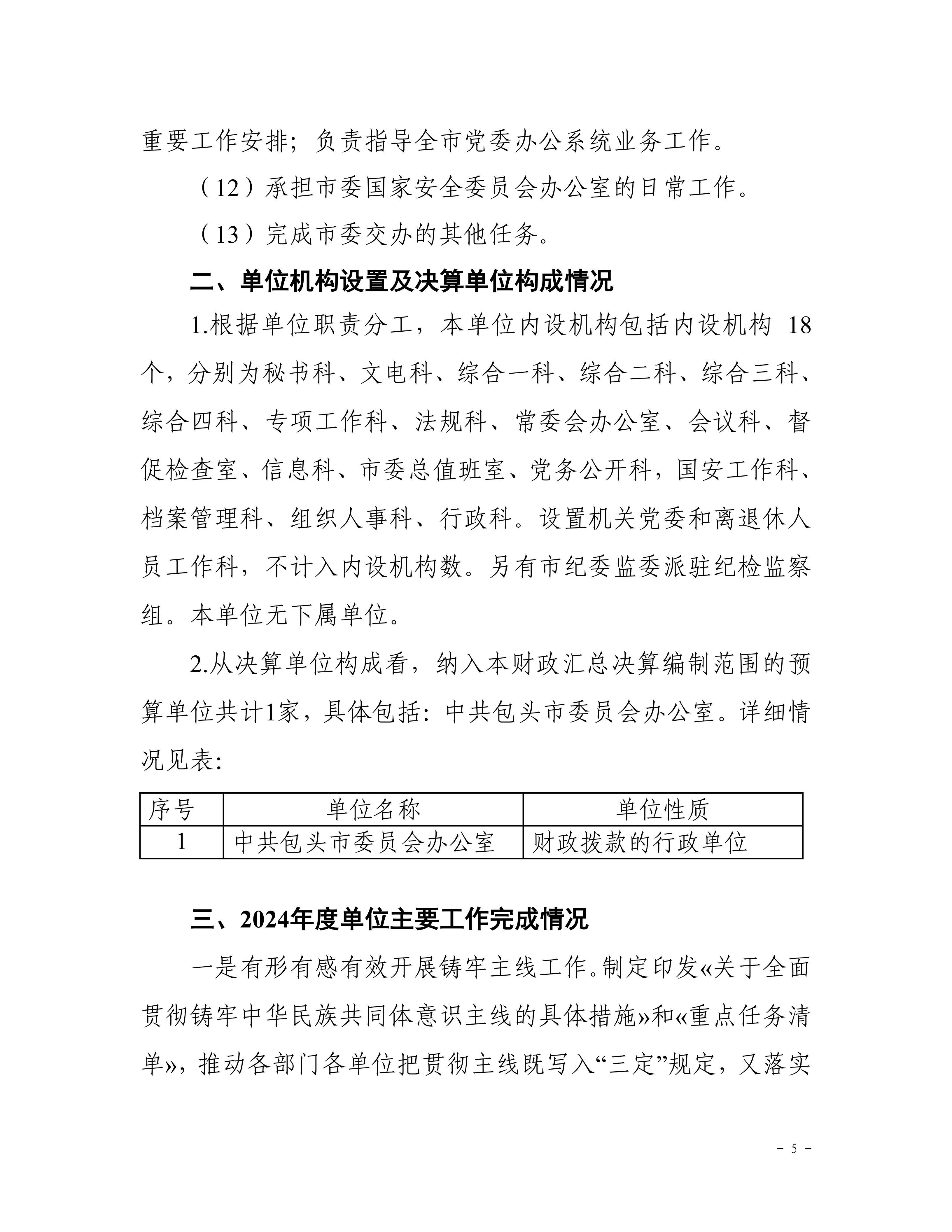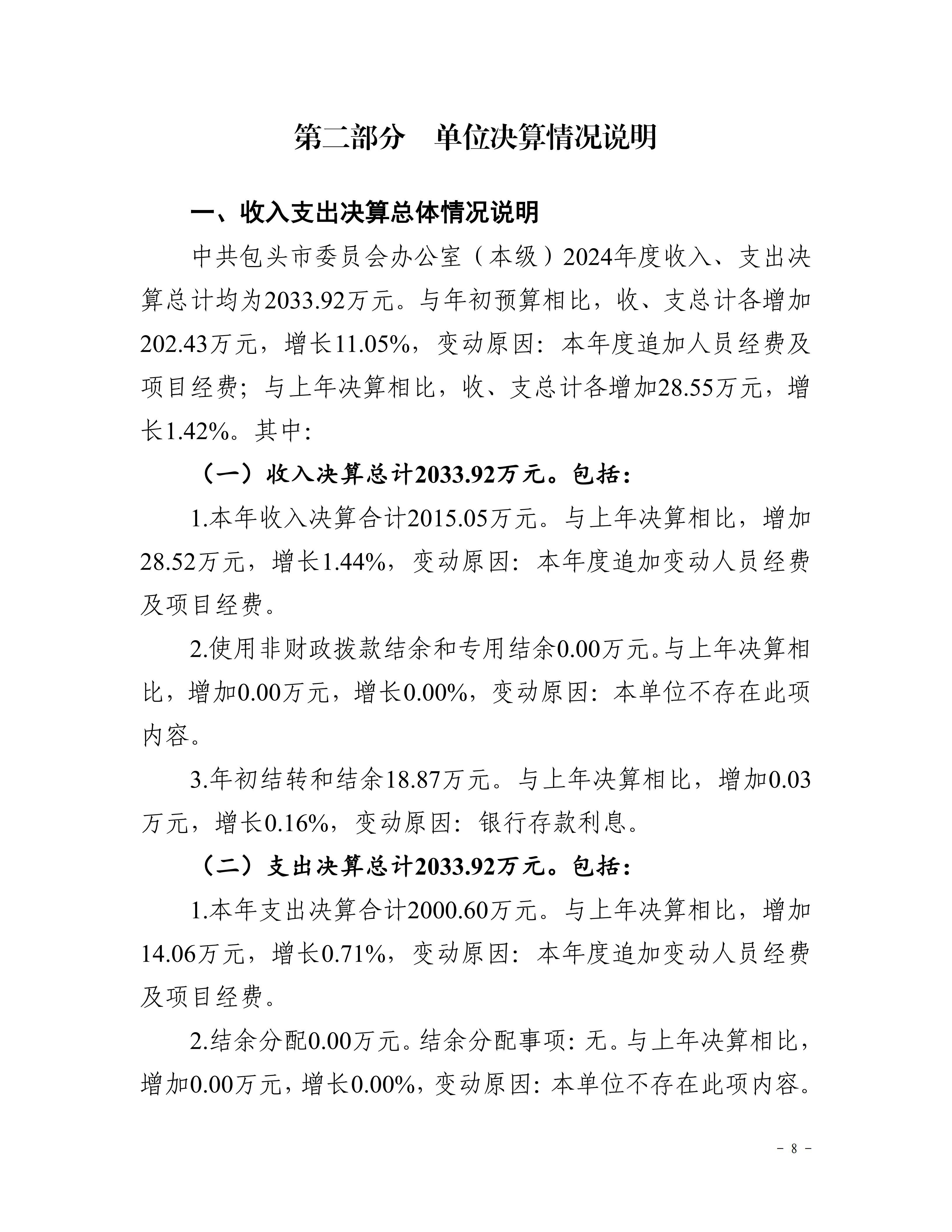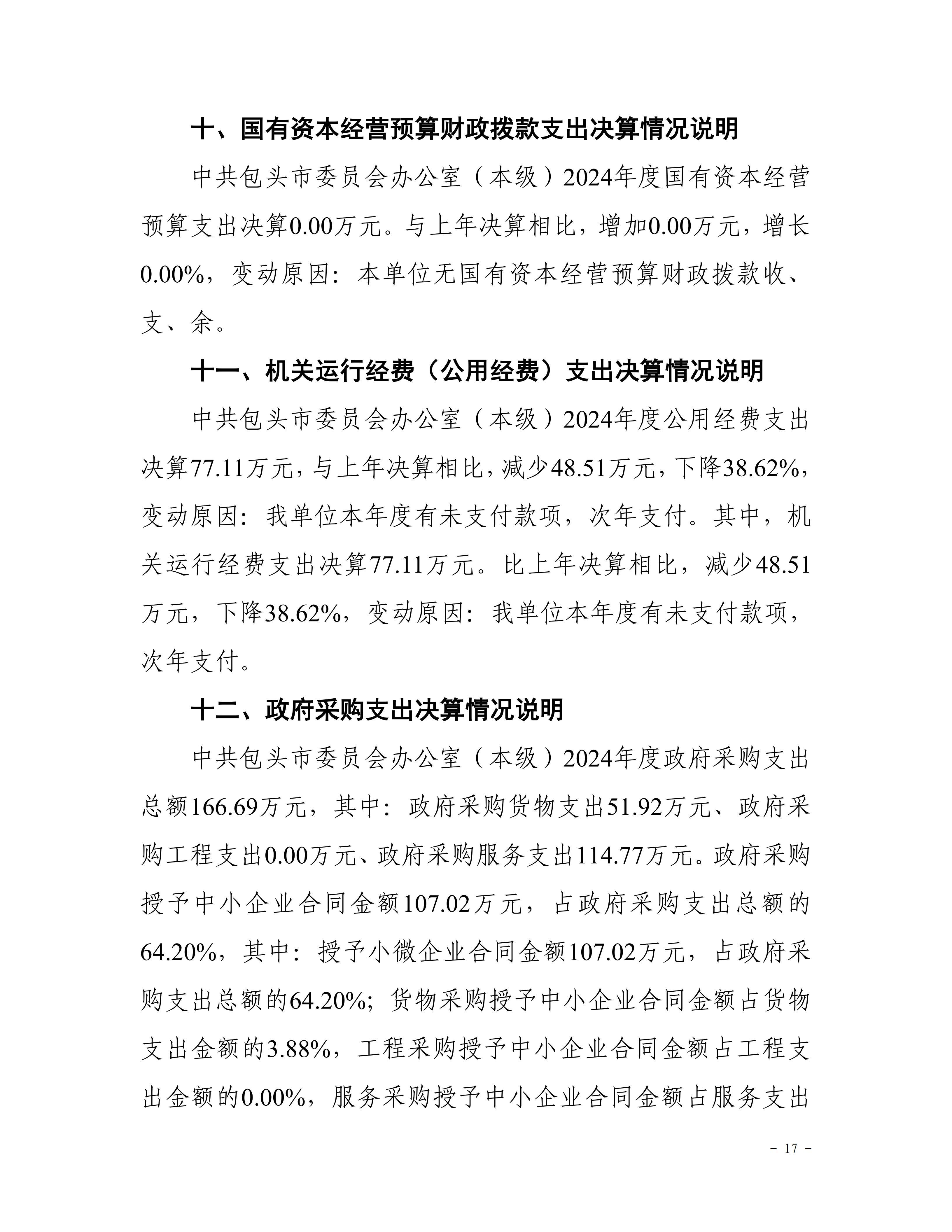 中共包头市委员会办公室(本级)2024年度决算公开