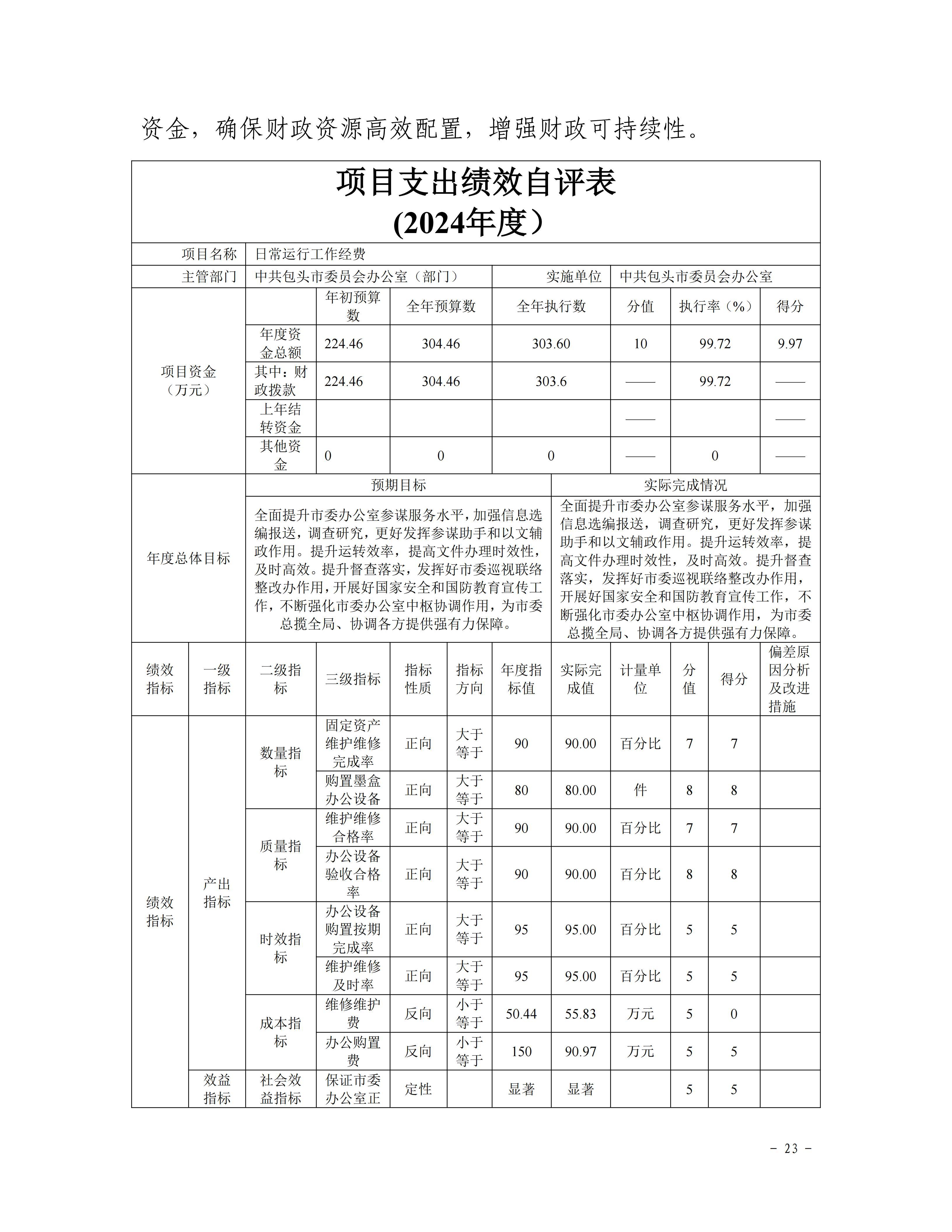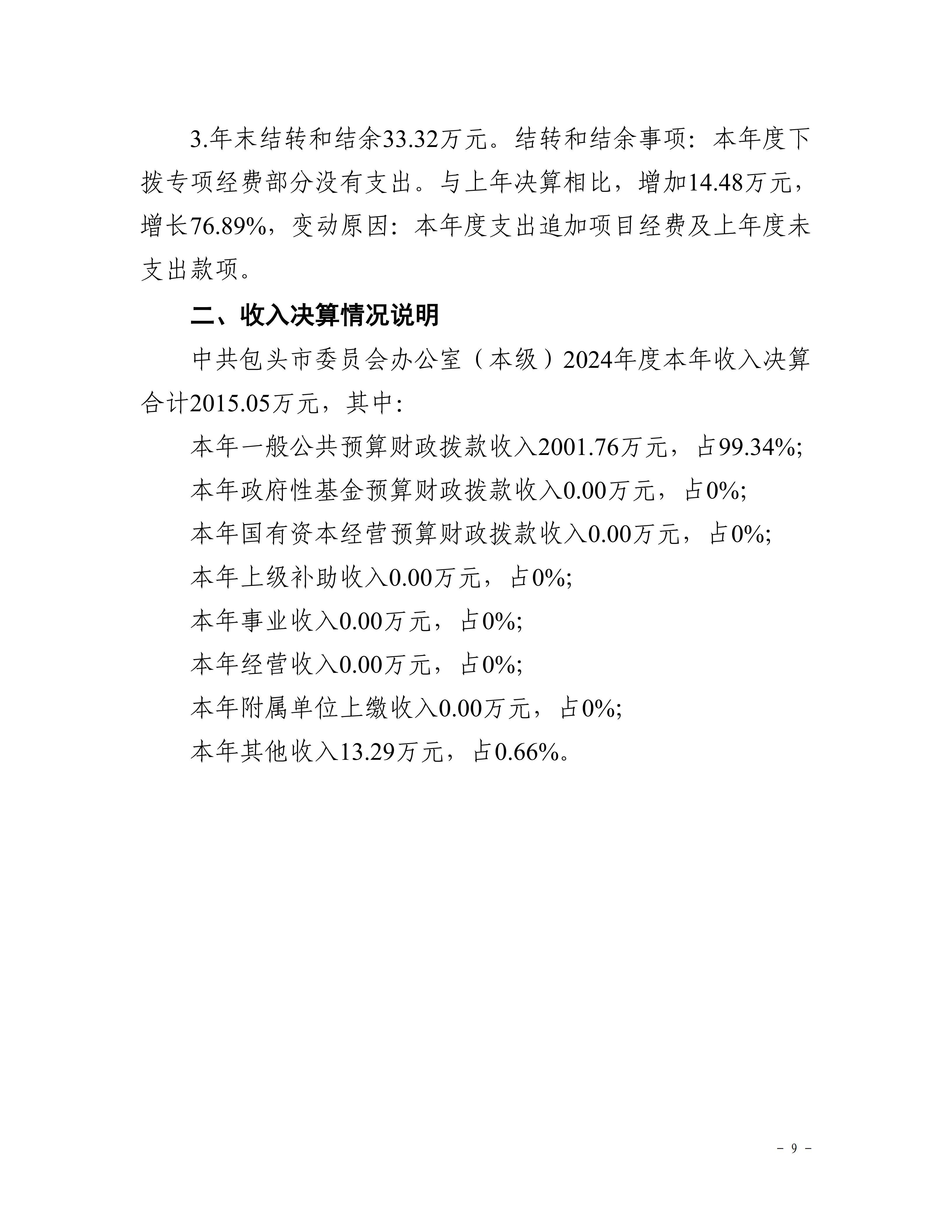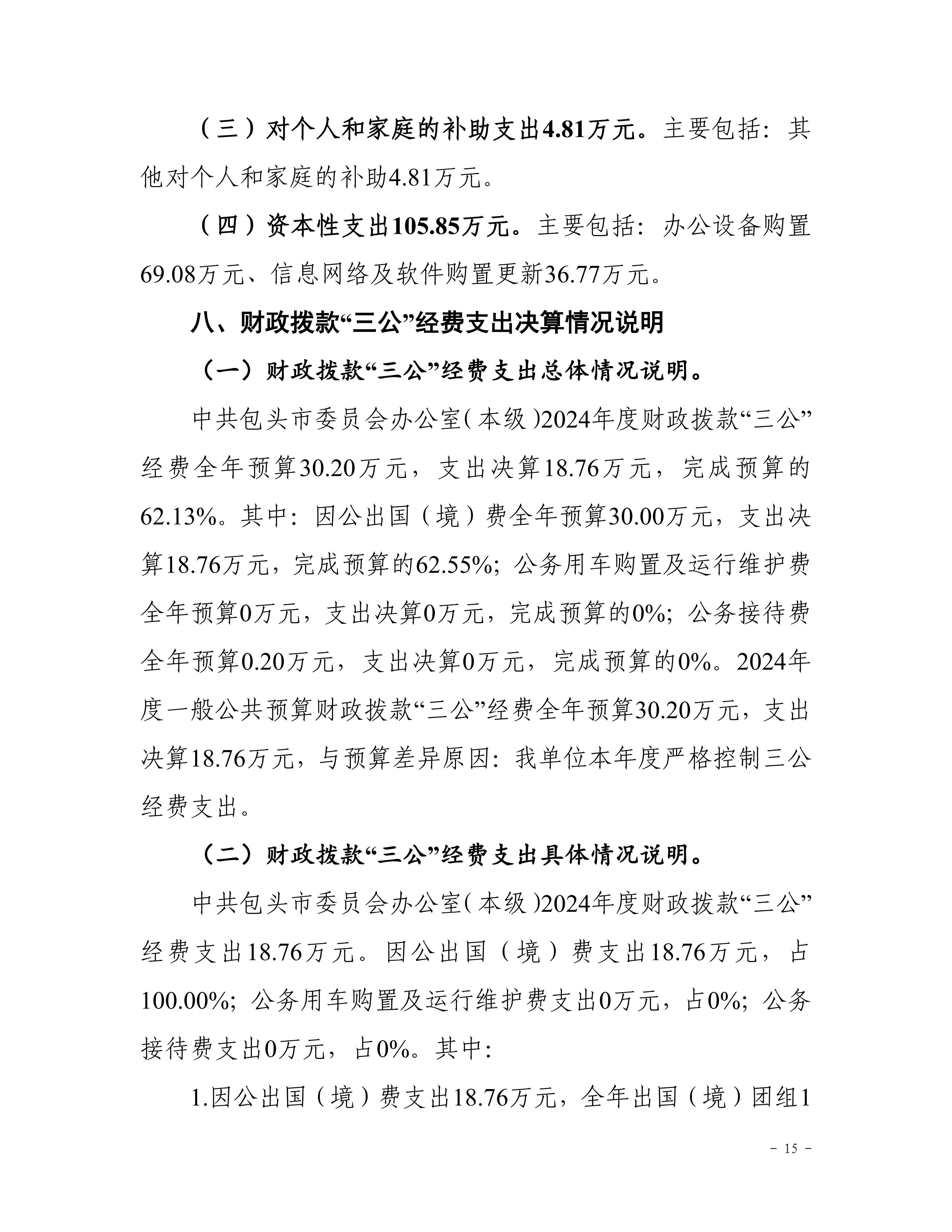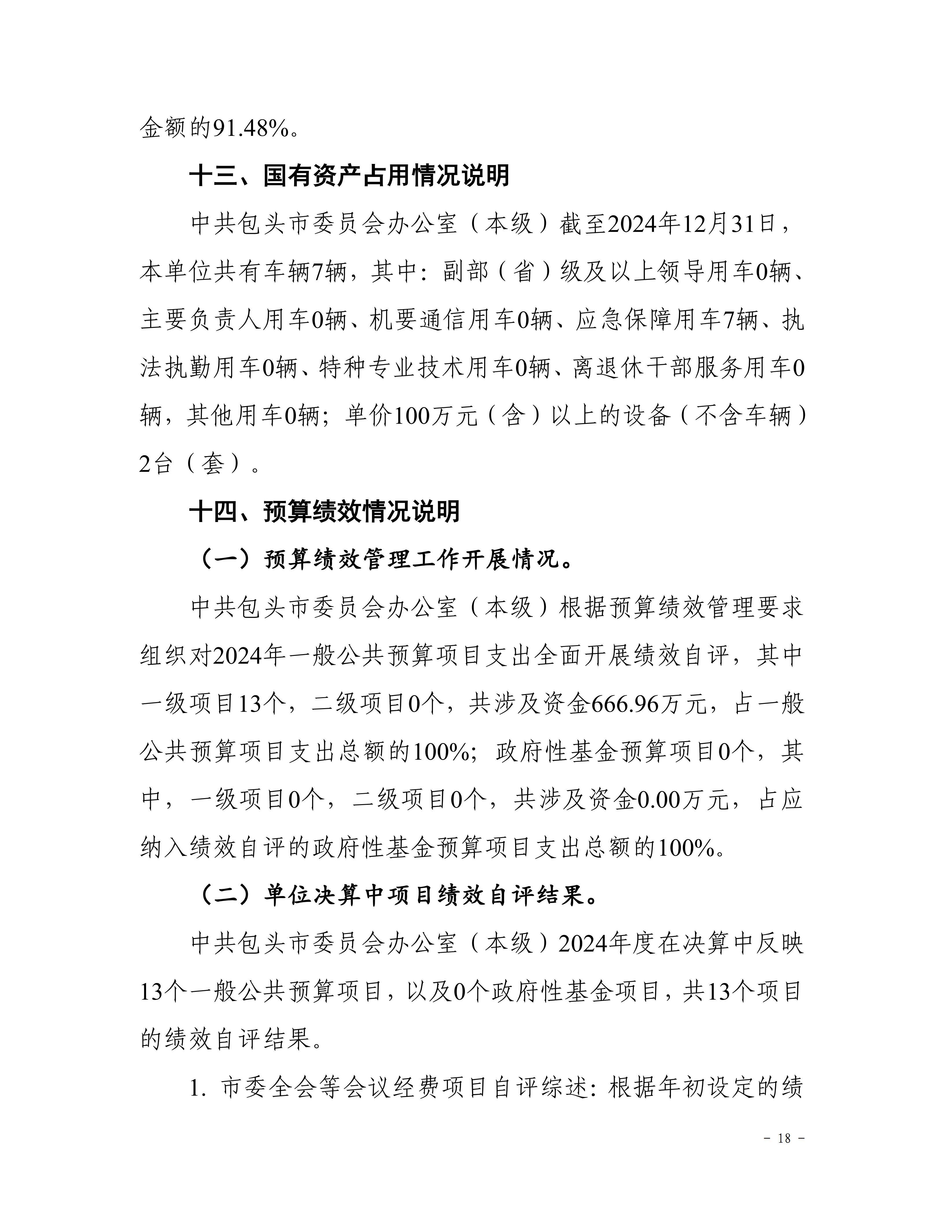 中共包头市委员会办公室(本级)2024年度决算公开