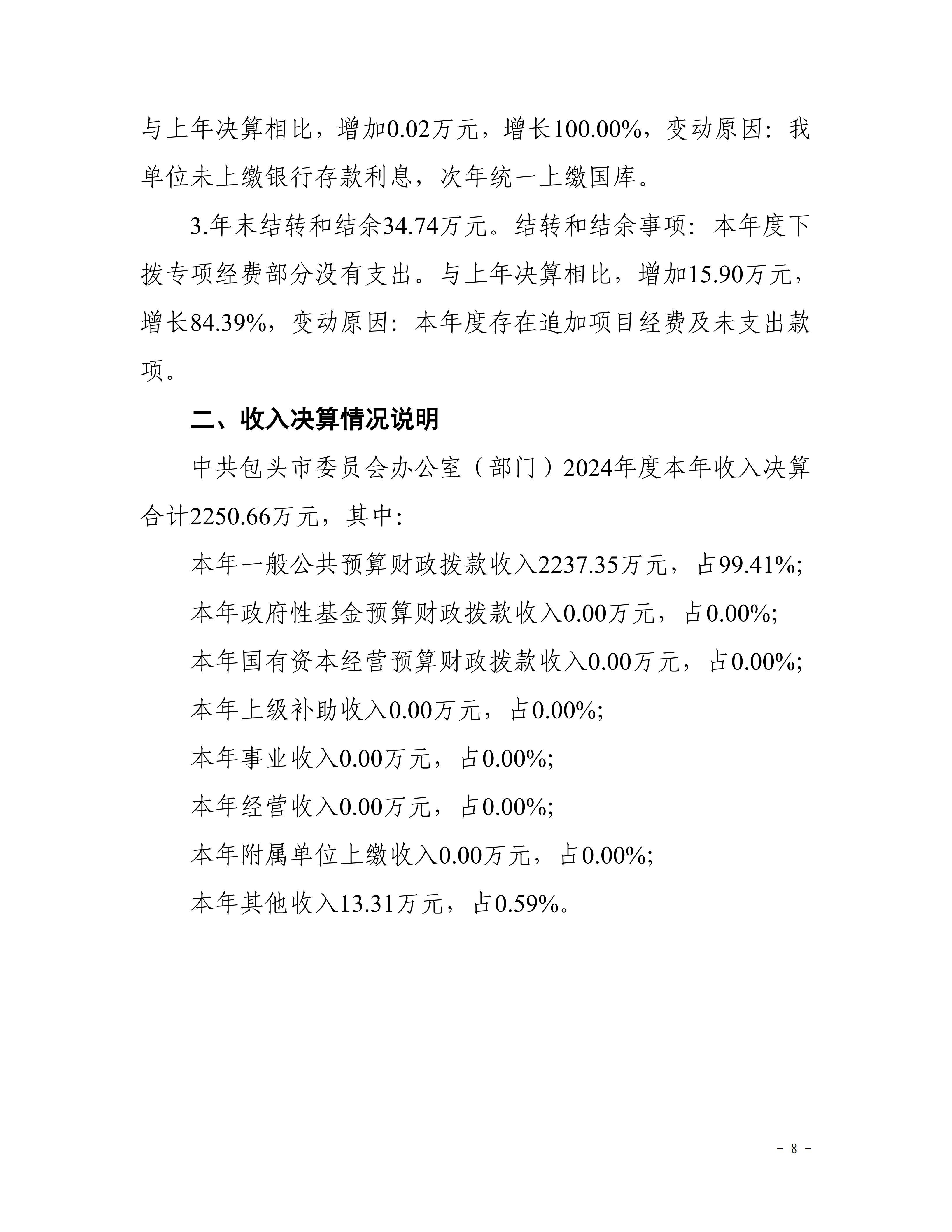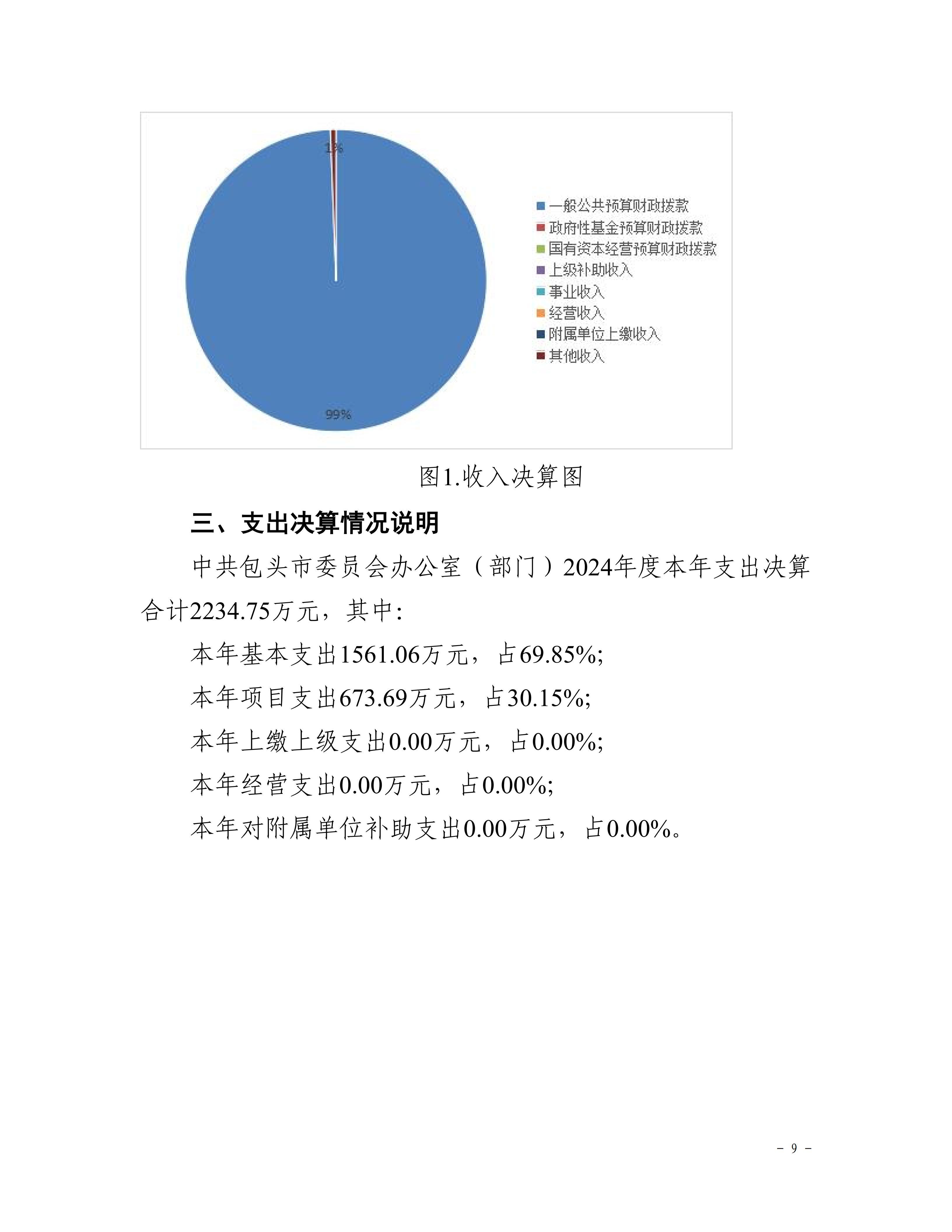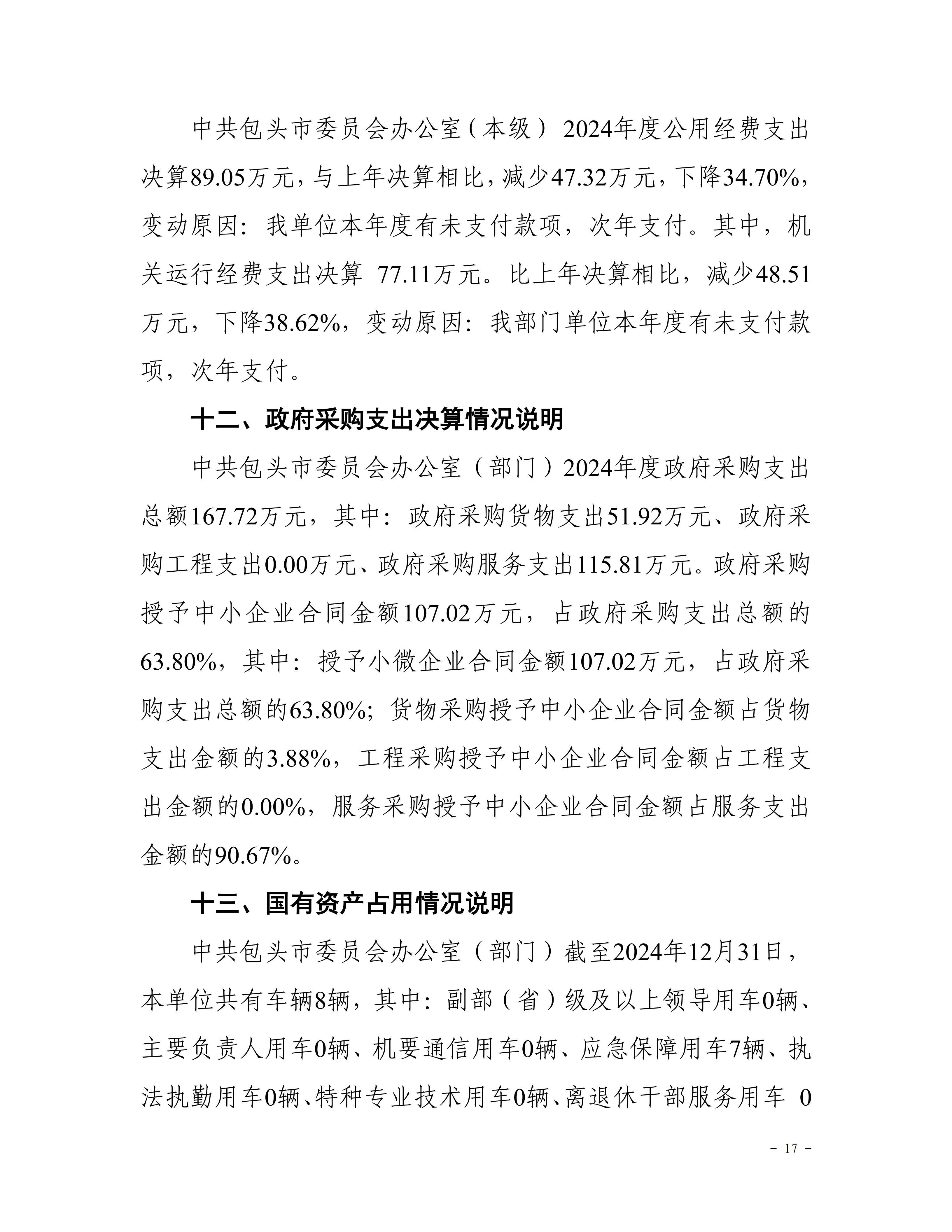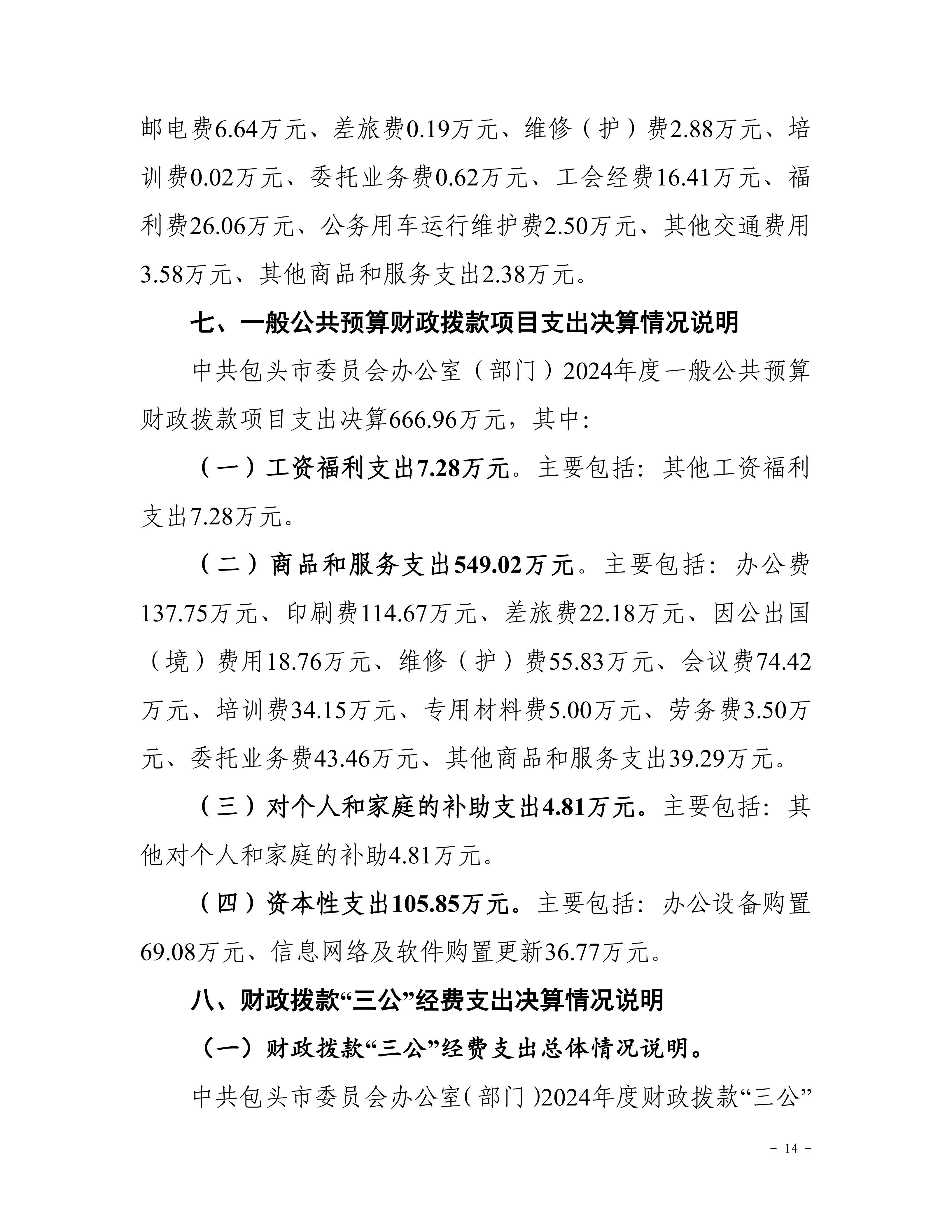 中共包头市委员会办公室部门2024年度决算公开
