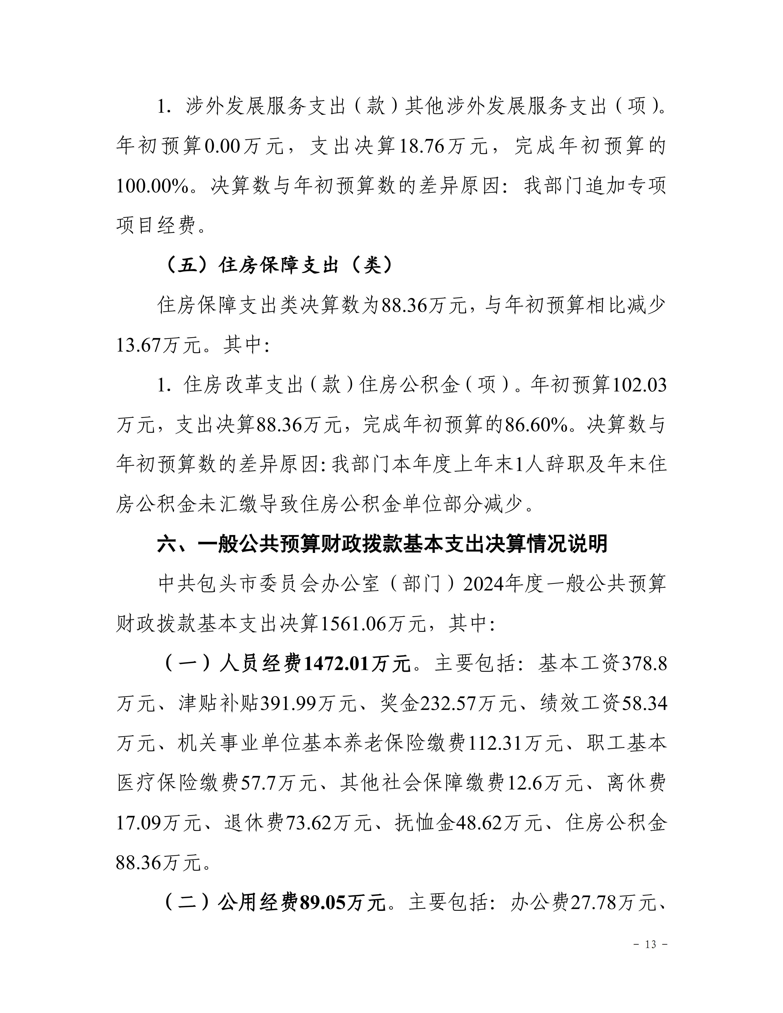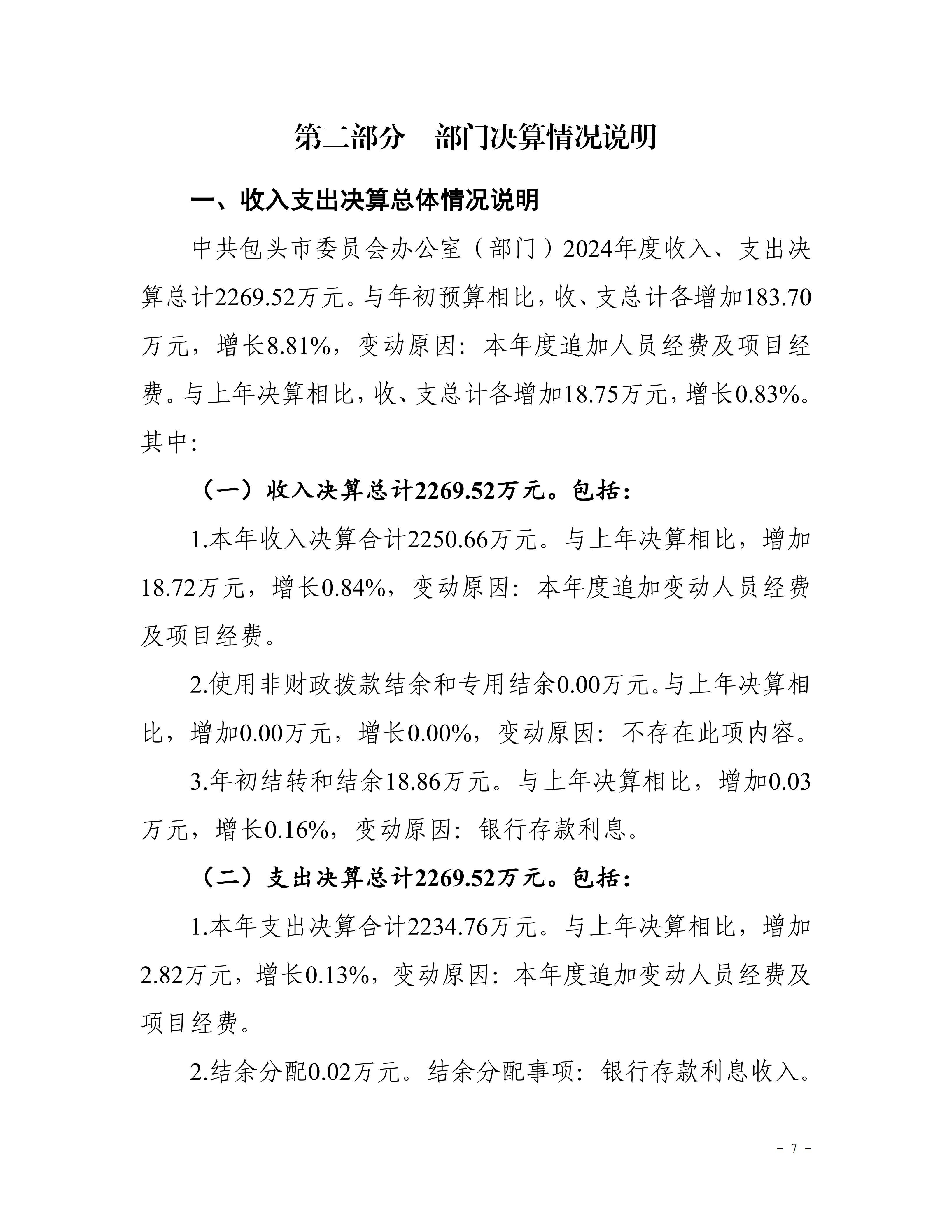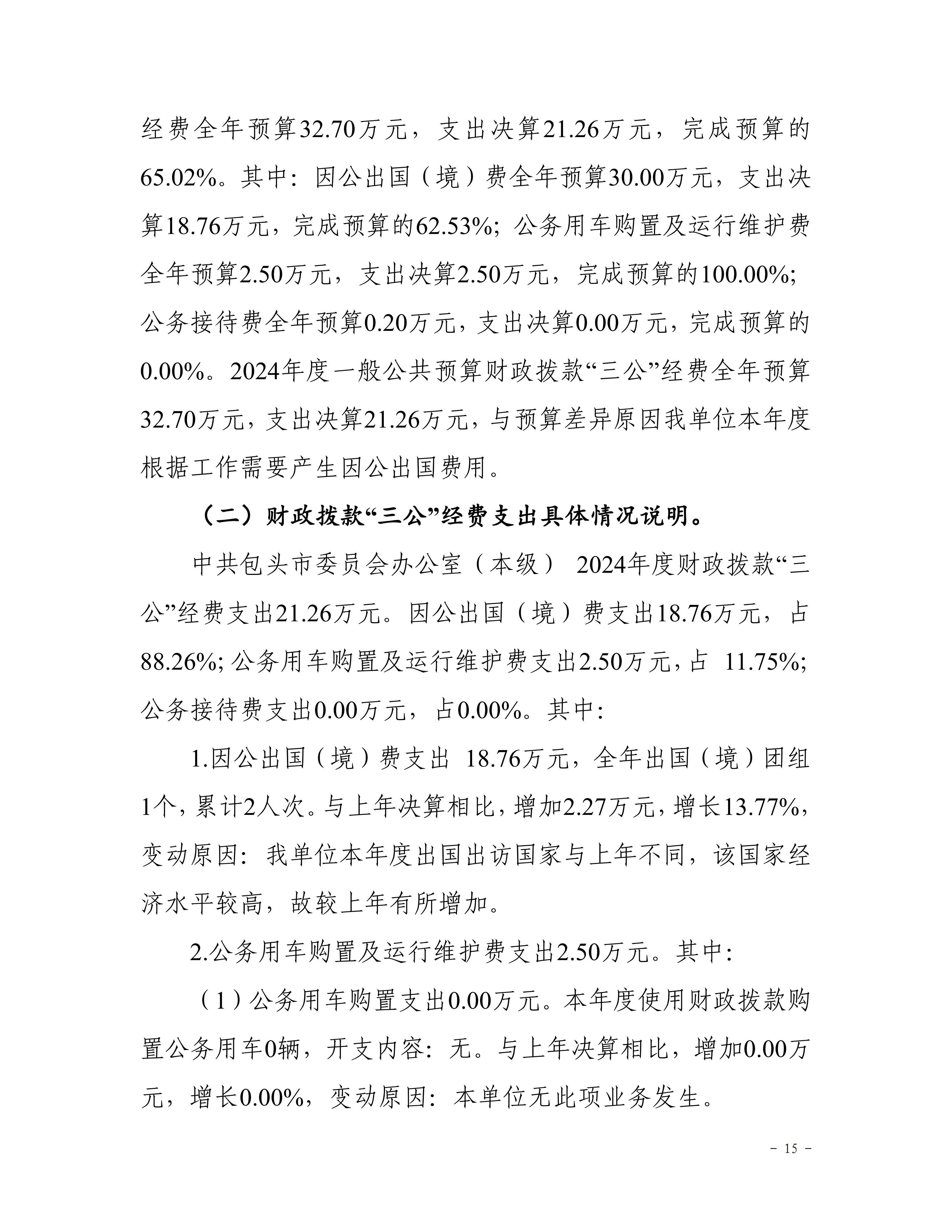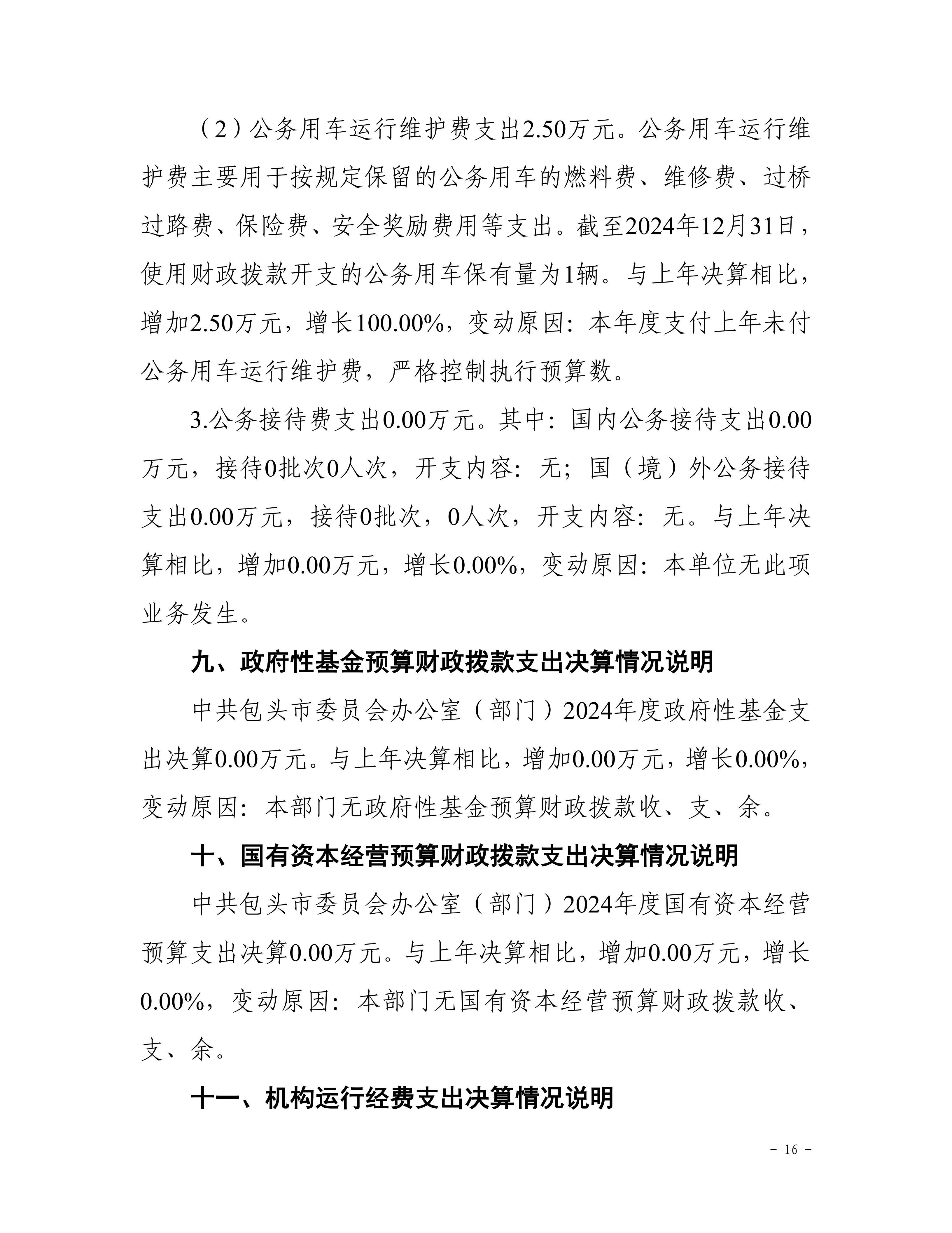 中共包头市委员会办公室部门2024年度决算公开