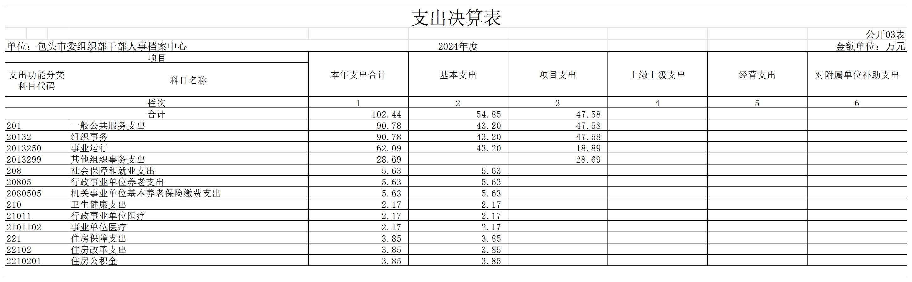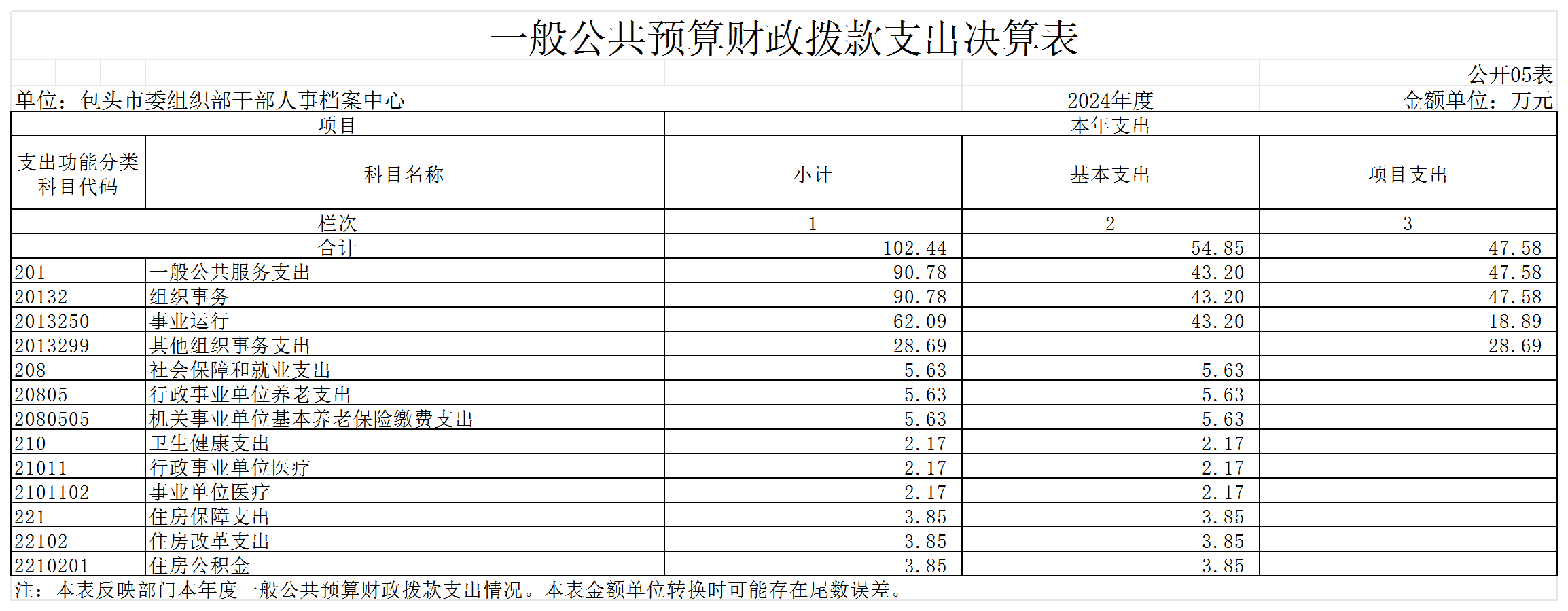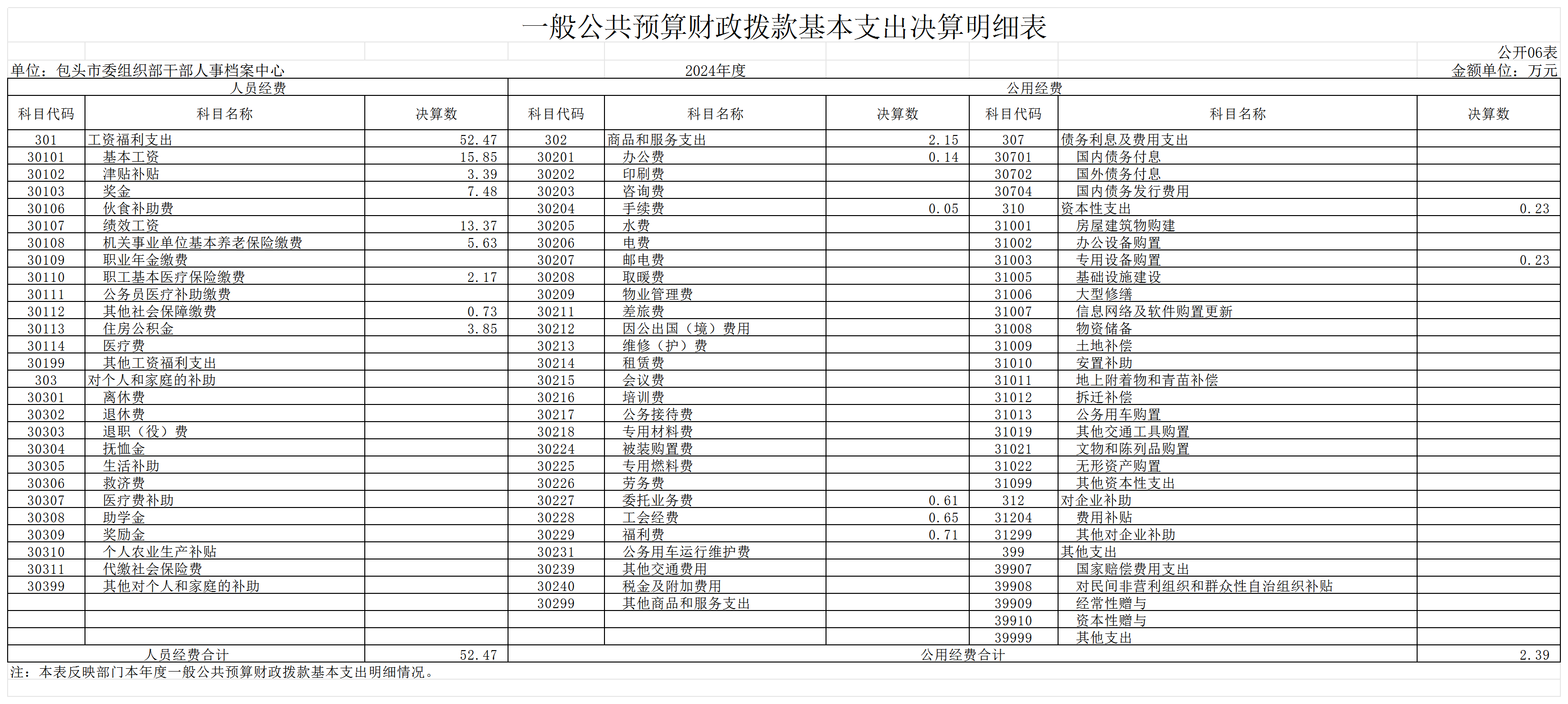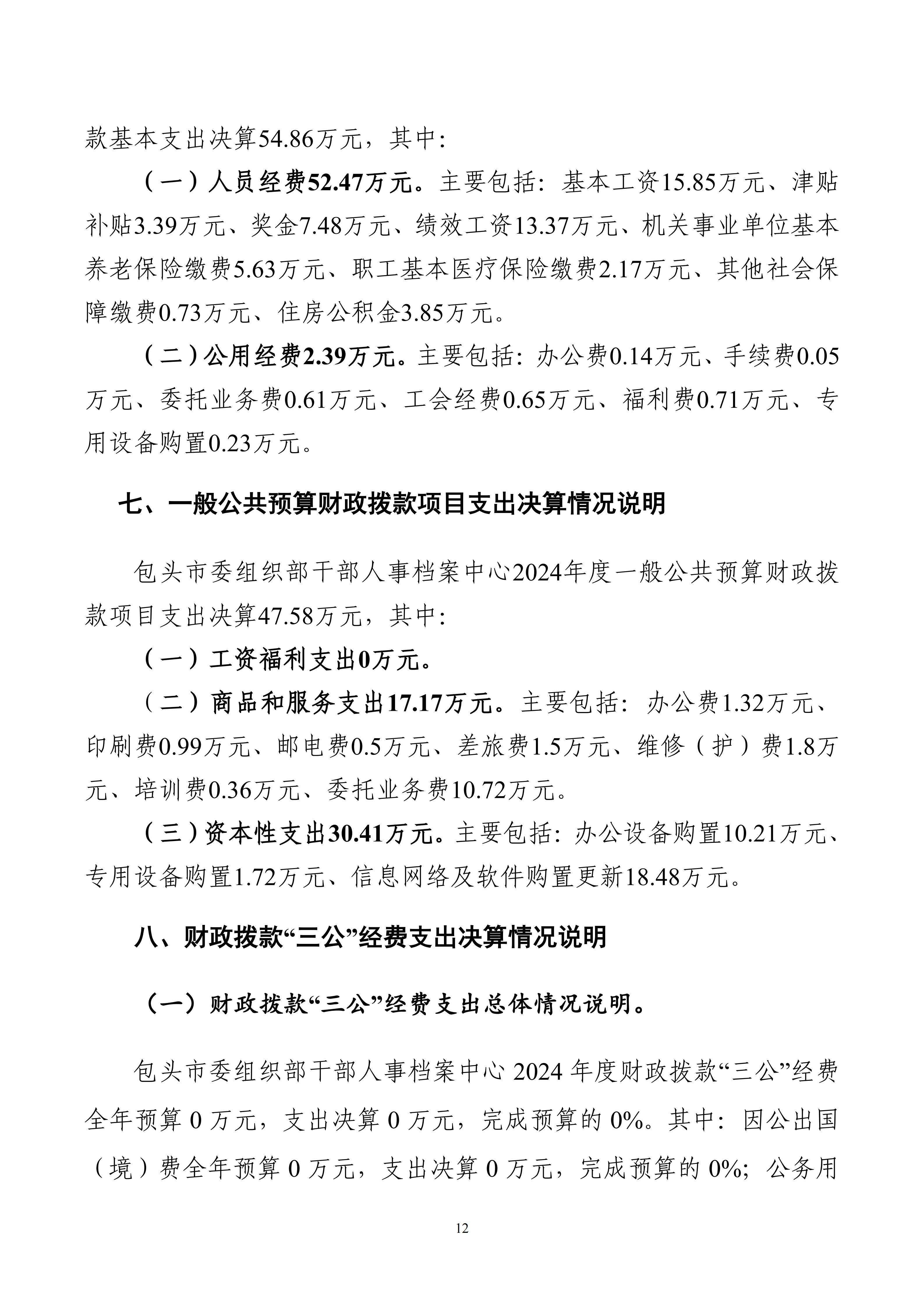 包头市委组织部干部人事档案中心2024年度决算公开