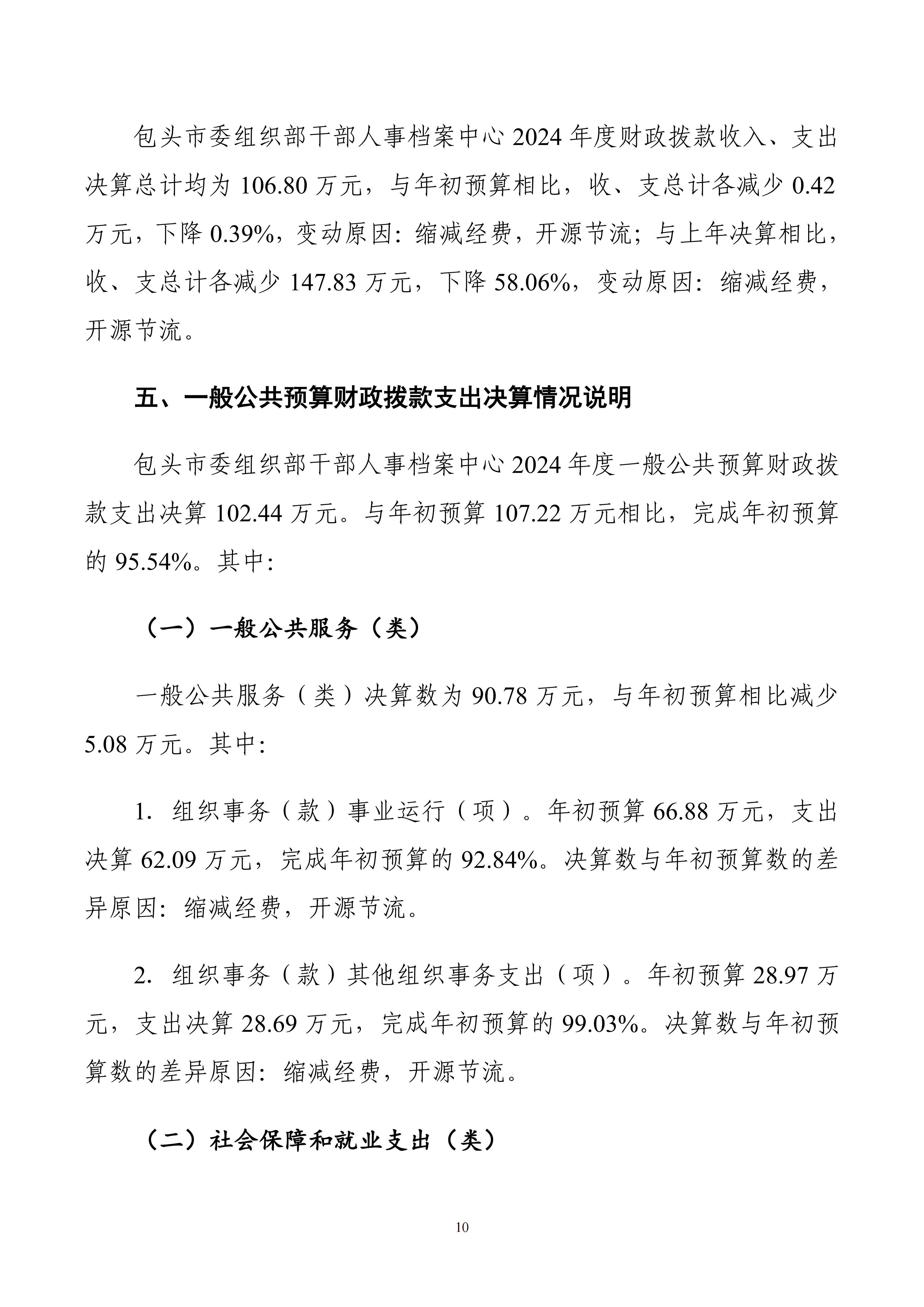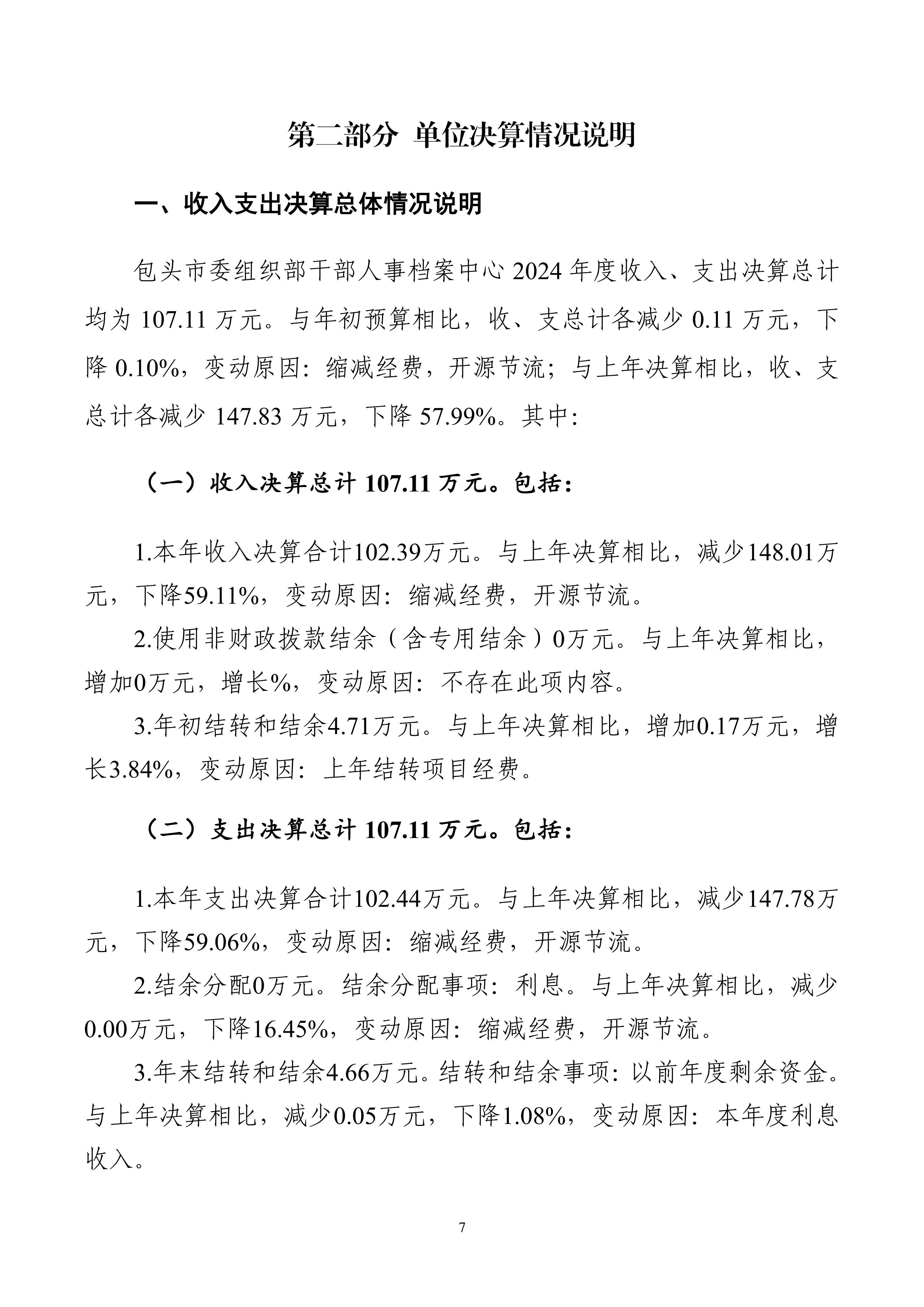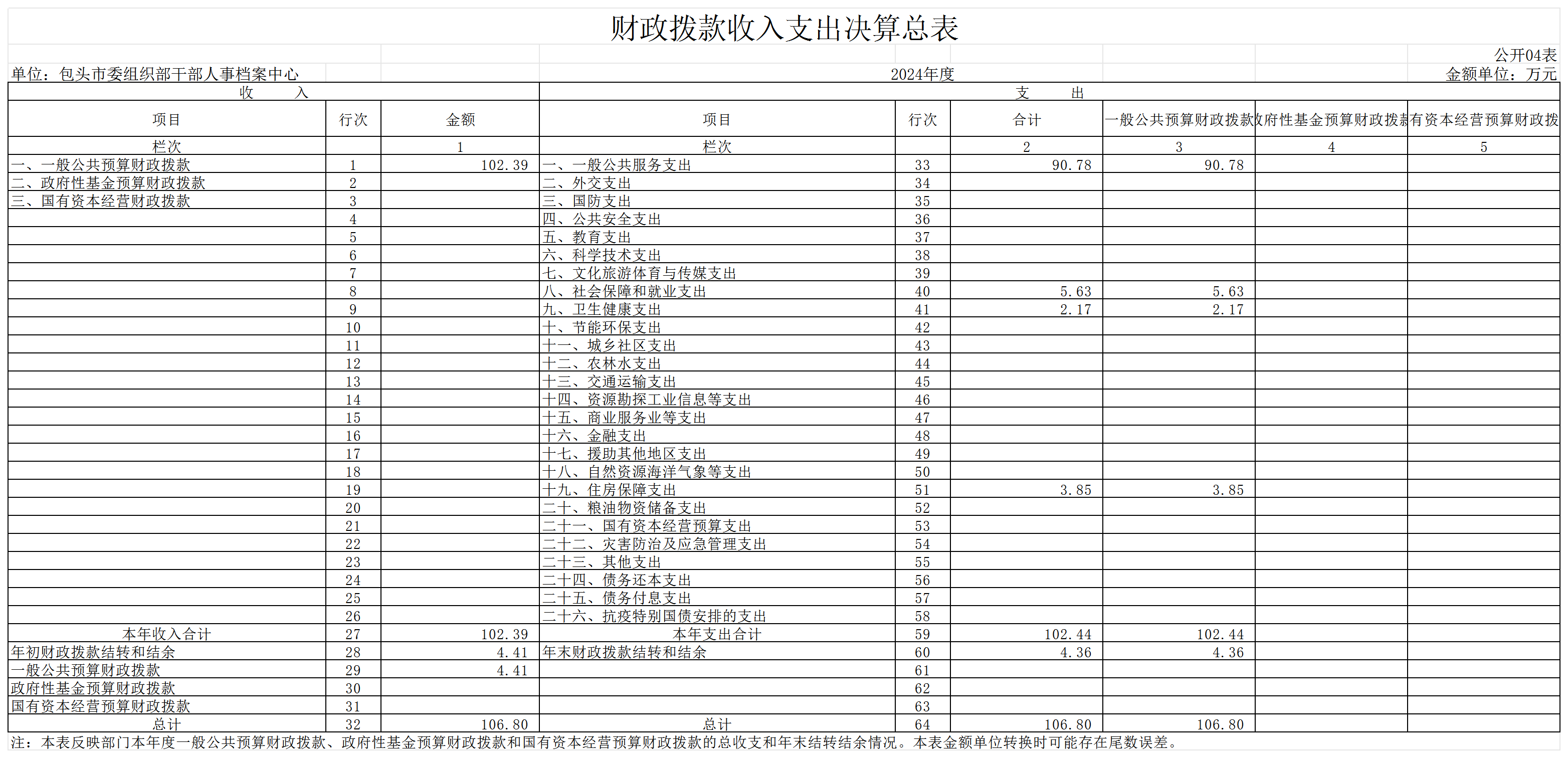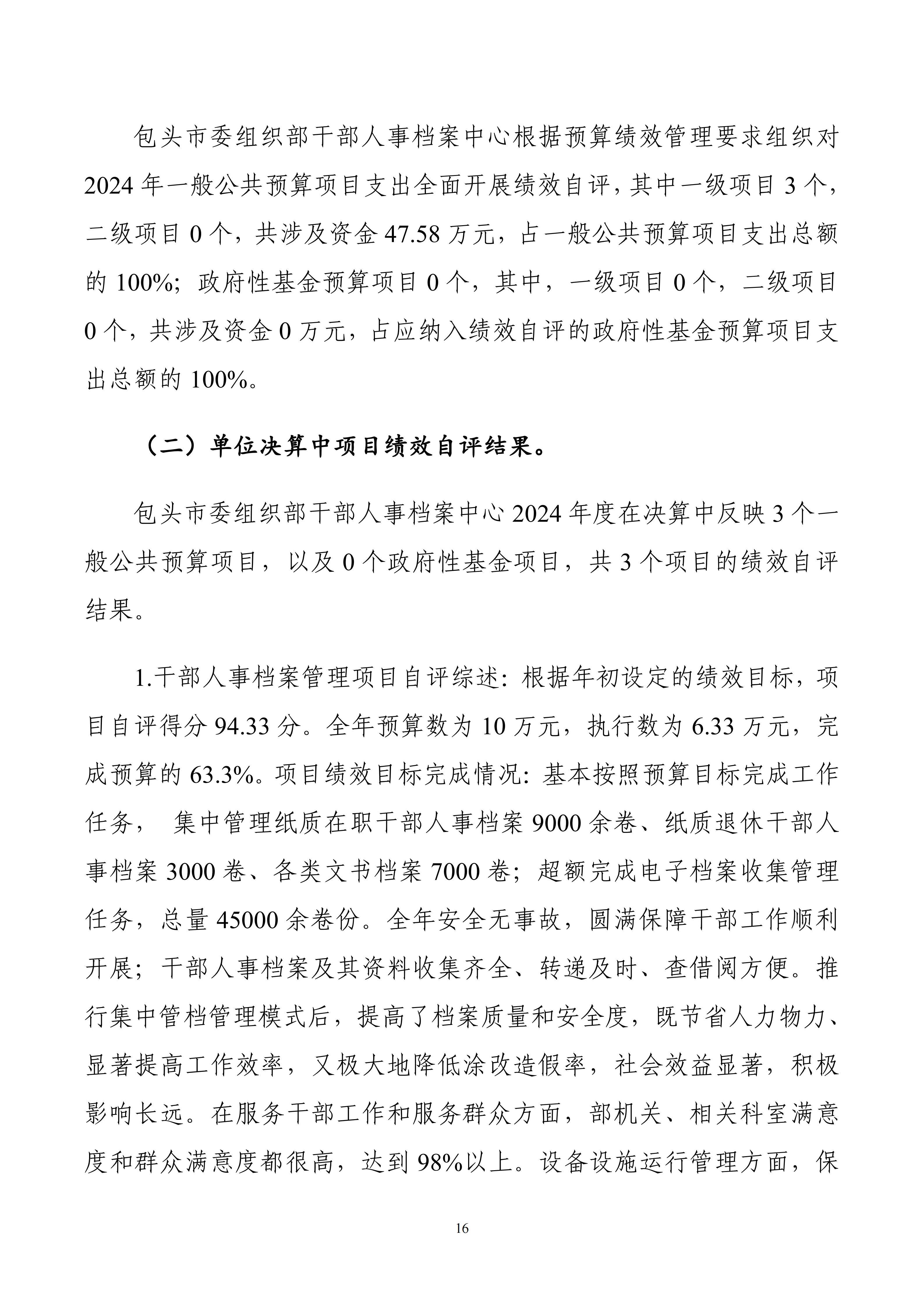 包头市委组织部干部人事档案中心2024年度决算公开