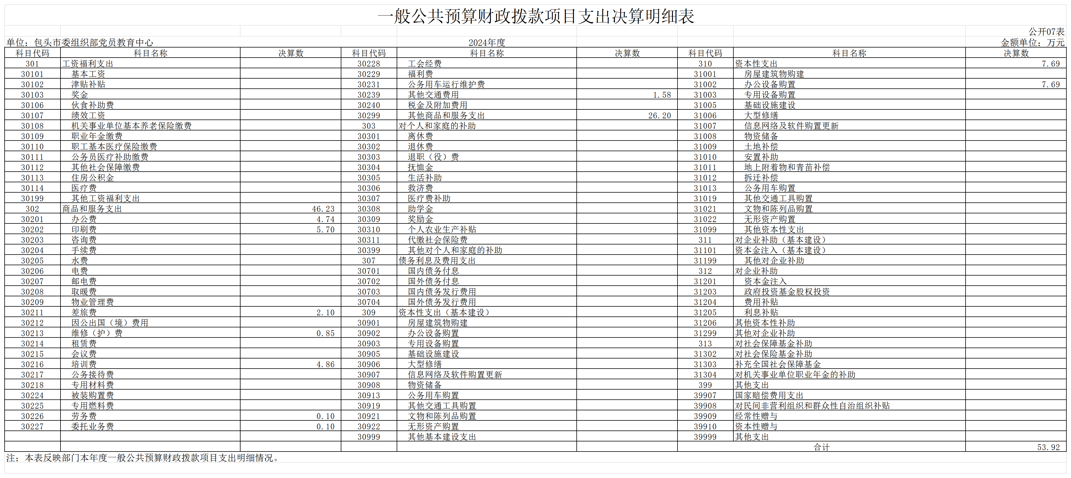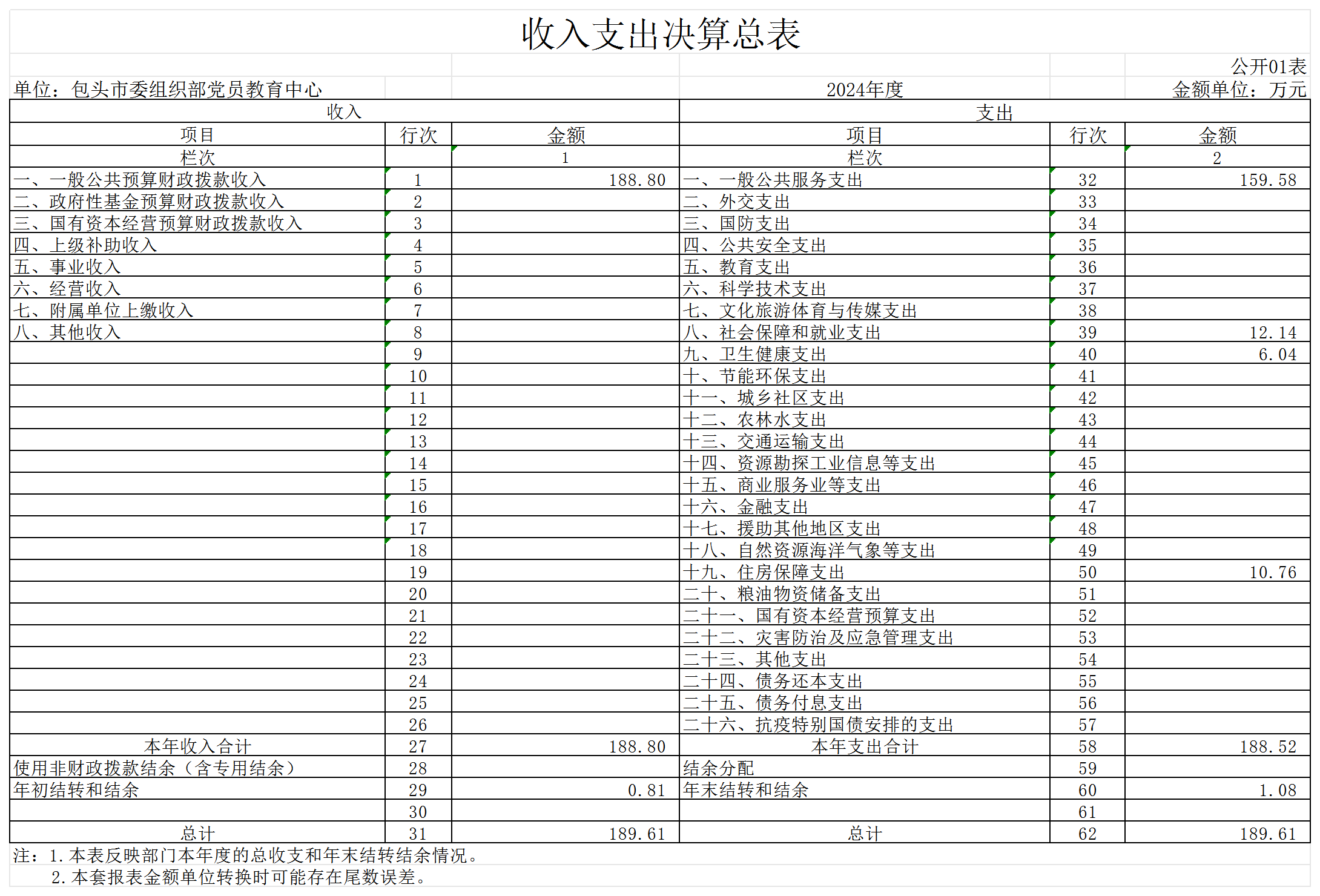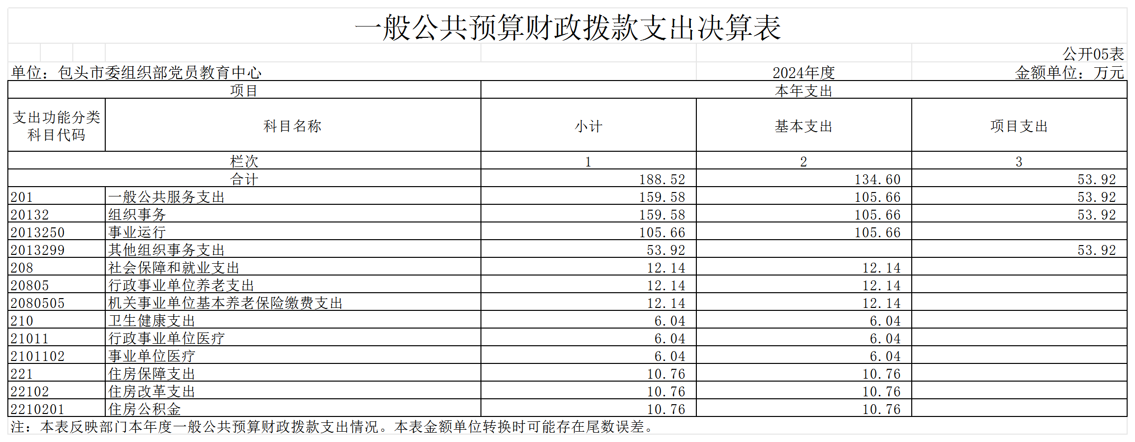 包头市委组织部党员教育中心2024年度决算公开